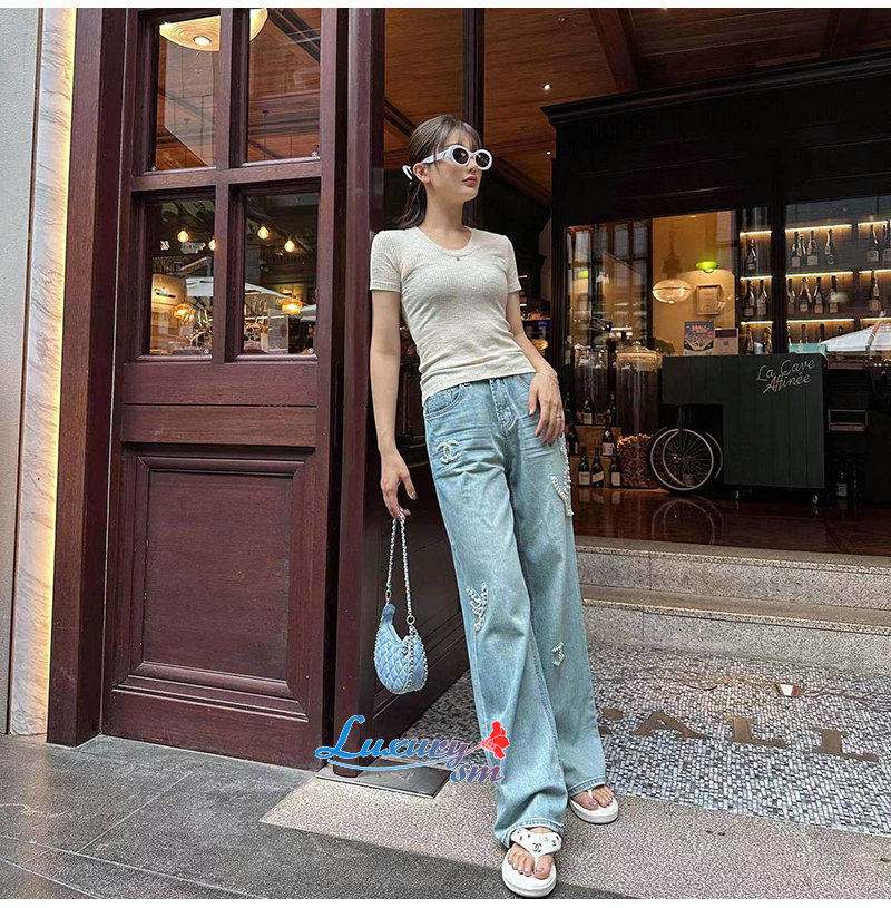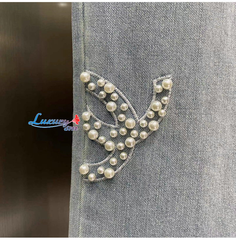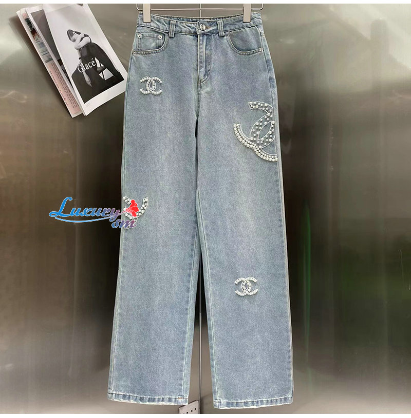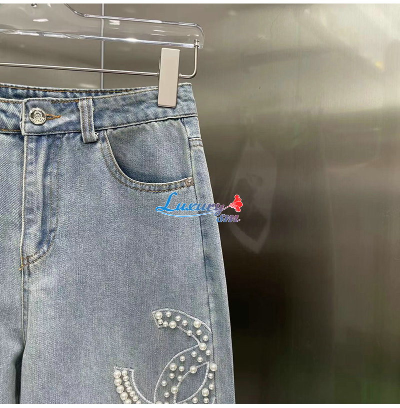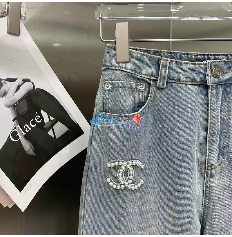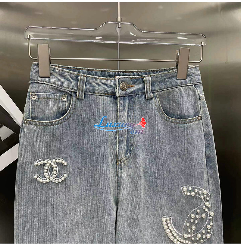 CHANEL-06161 샤넬 라이트 블루 레진 진주 장식 청바지 여성용