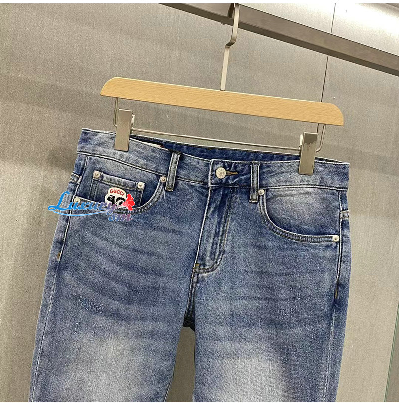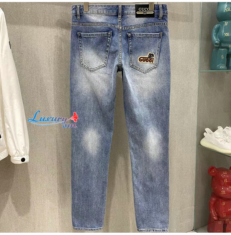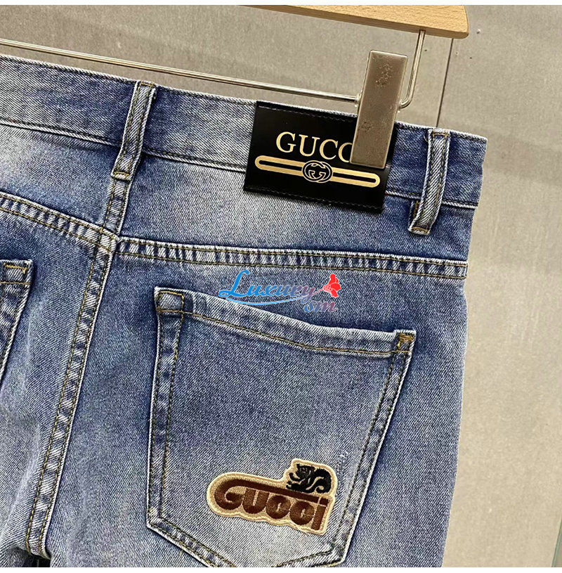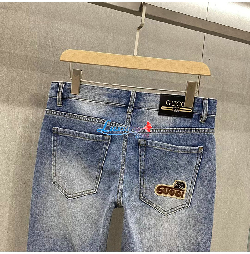 GUCCI-061615 구찌 블루 아플리케 장식 청바지 남성용