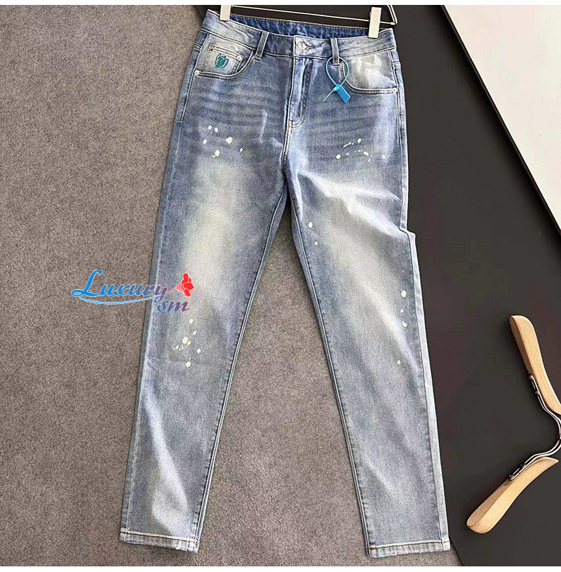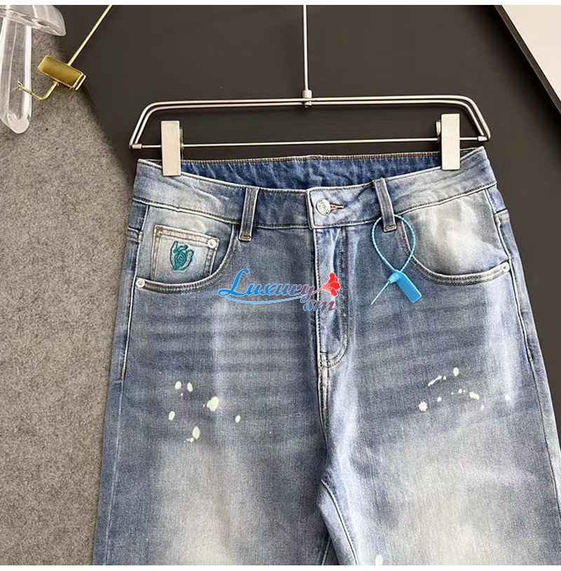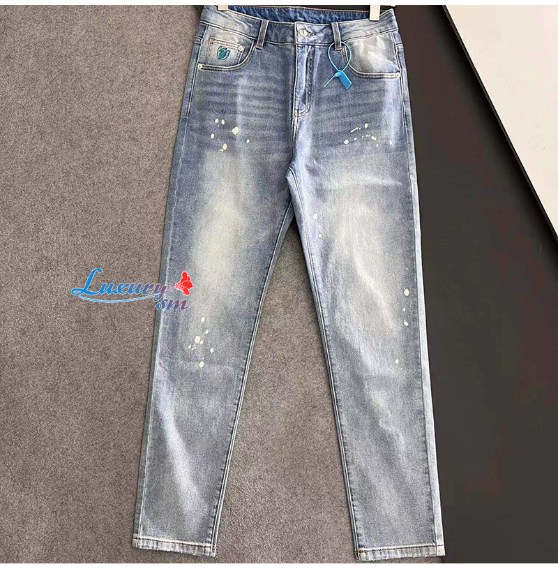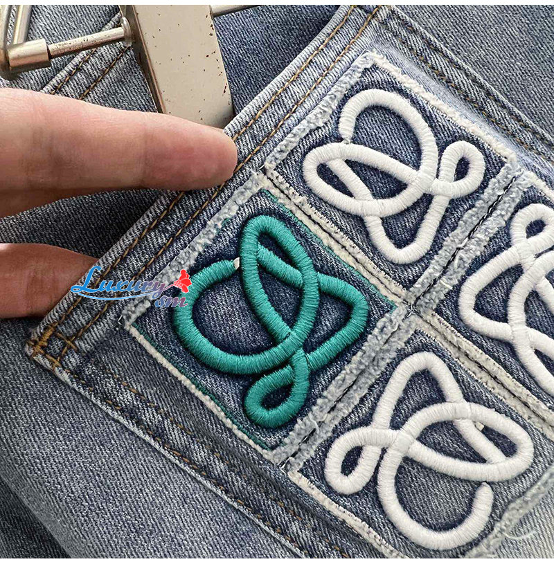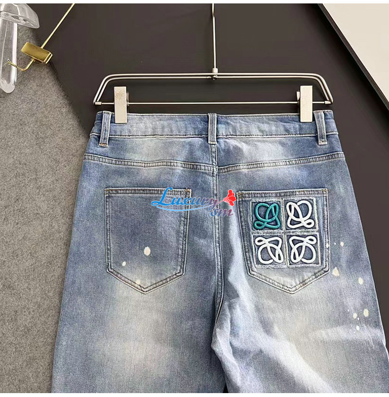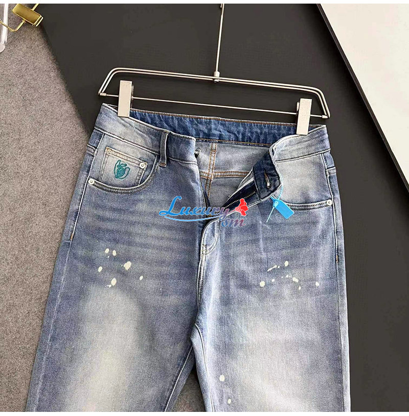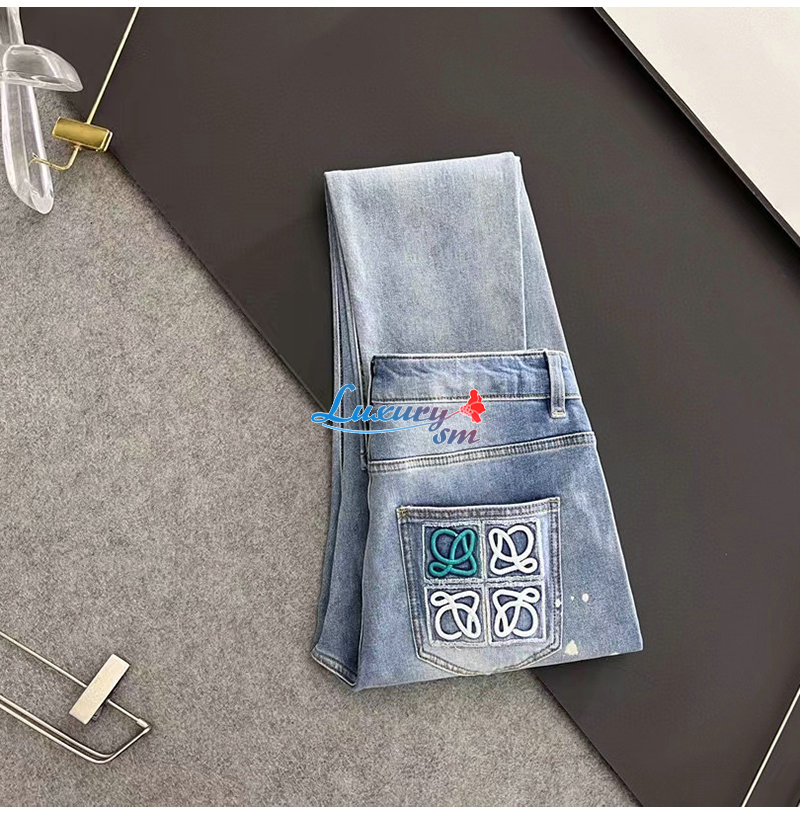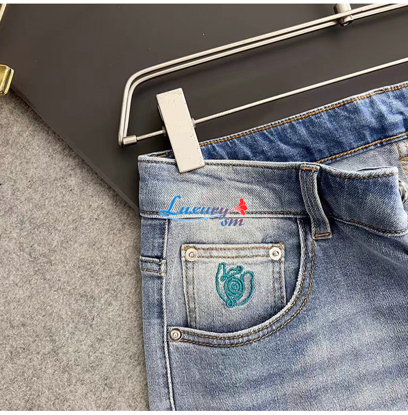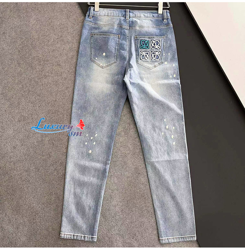 LOEWE-08126 로에베 라이트 블루 아플리케 장식 청바지 남성용