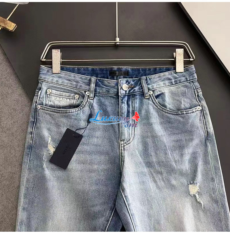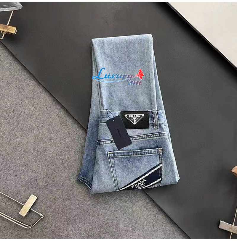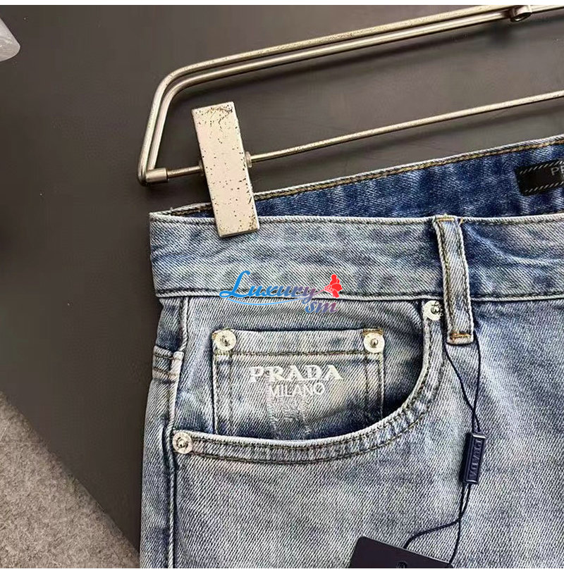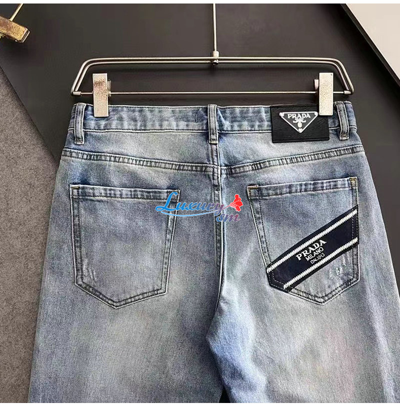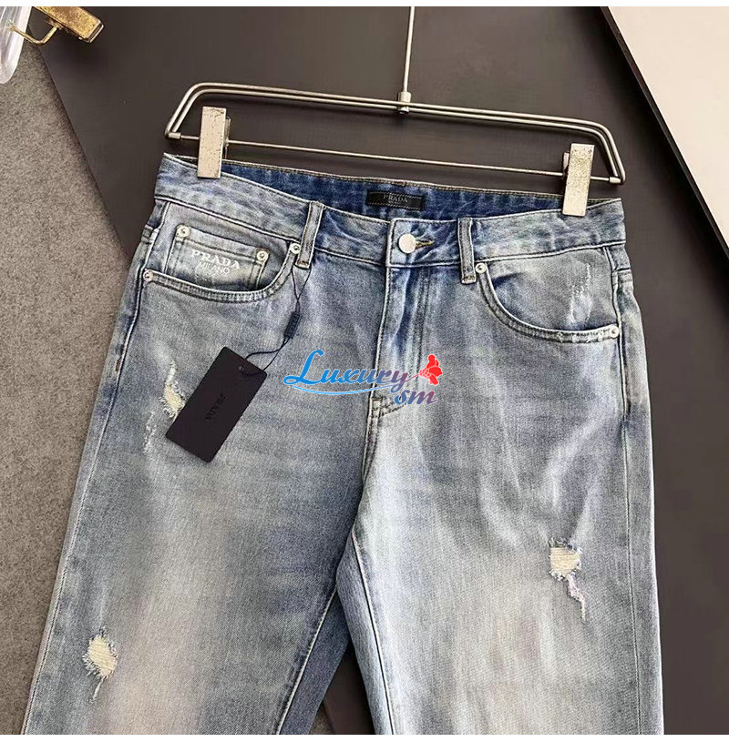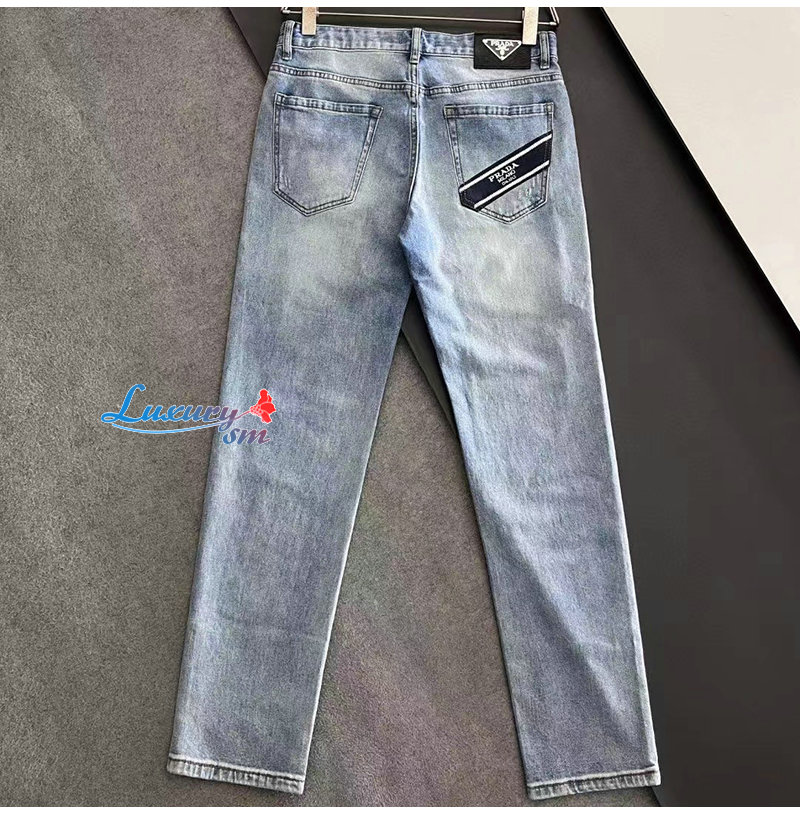 PRADA-03084 프라다 라이트 블루 트라이앵글 로고 청바지 남성용