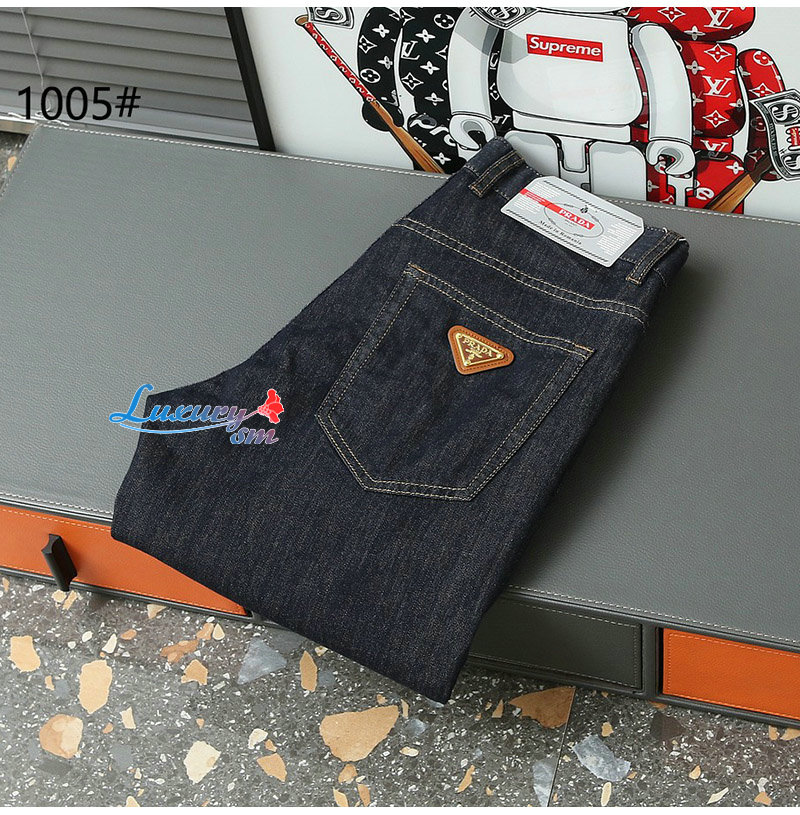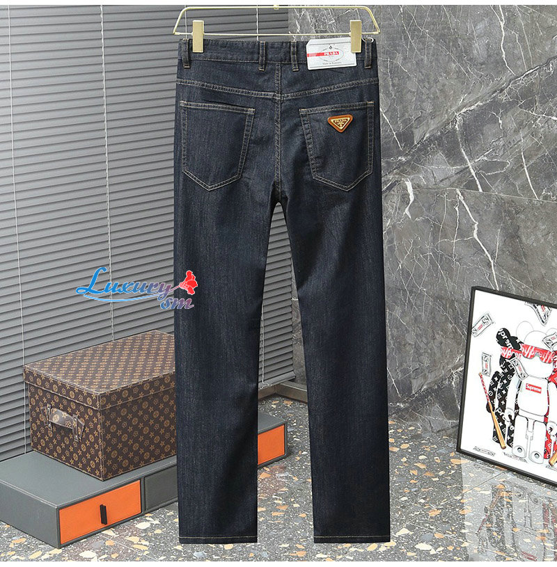 PRADA-02285 프라다 다크 블루 트라이앵글 로고 청바지 남성용