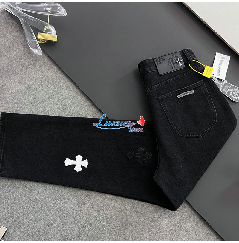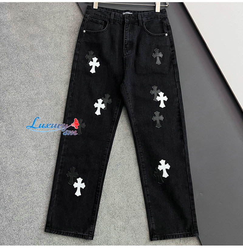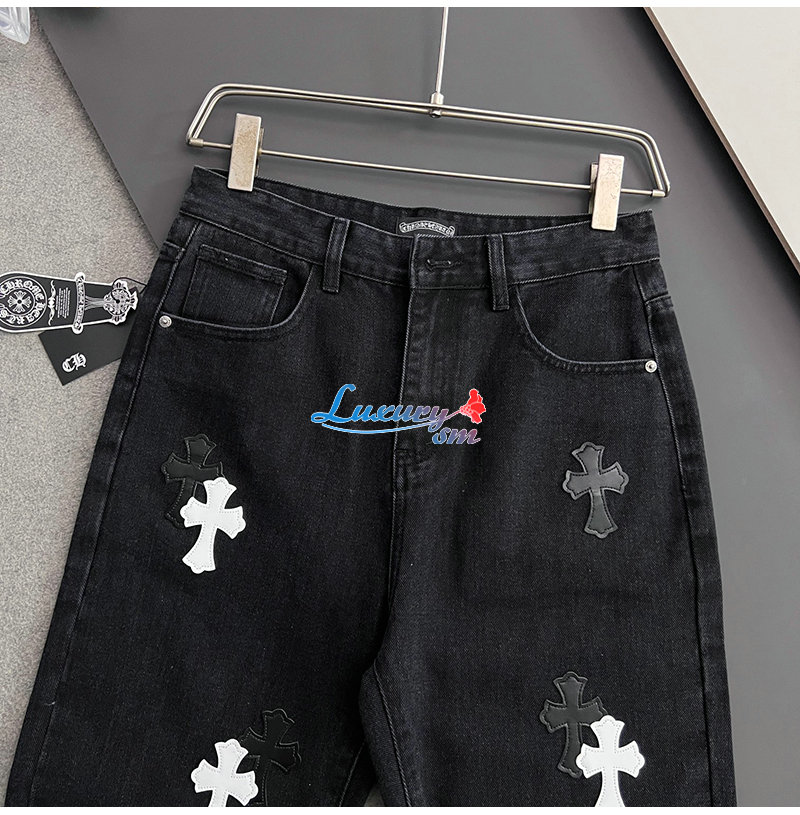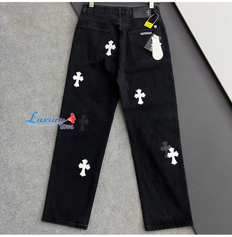 CHROMEHEARTS-04292 크롬하츠 블랙 십자가 아플리케 장식 청바지 남성용
