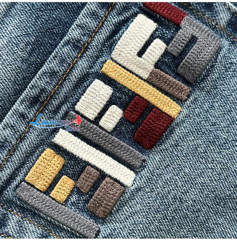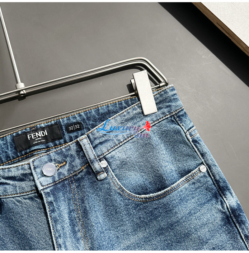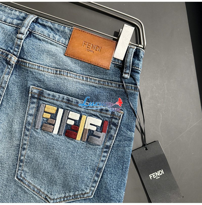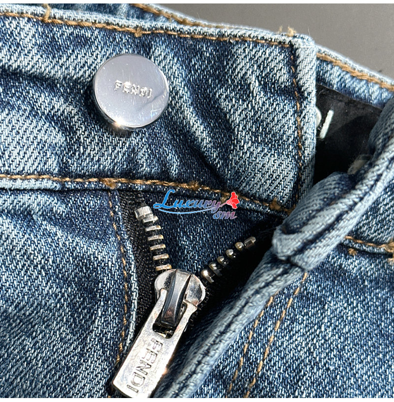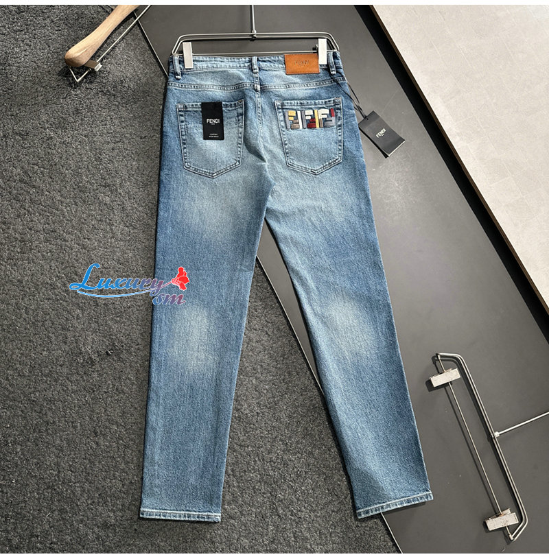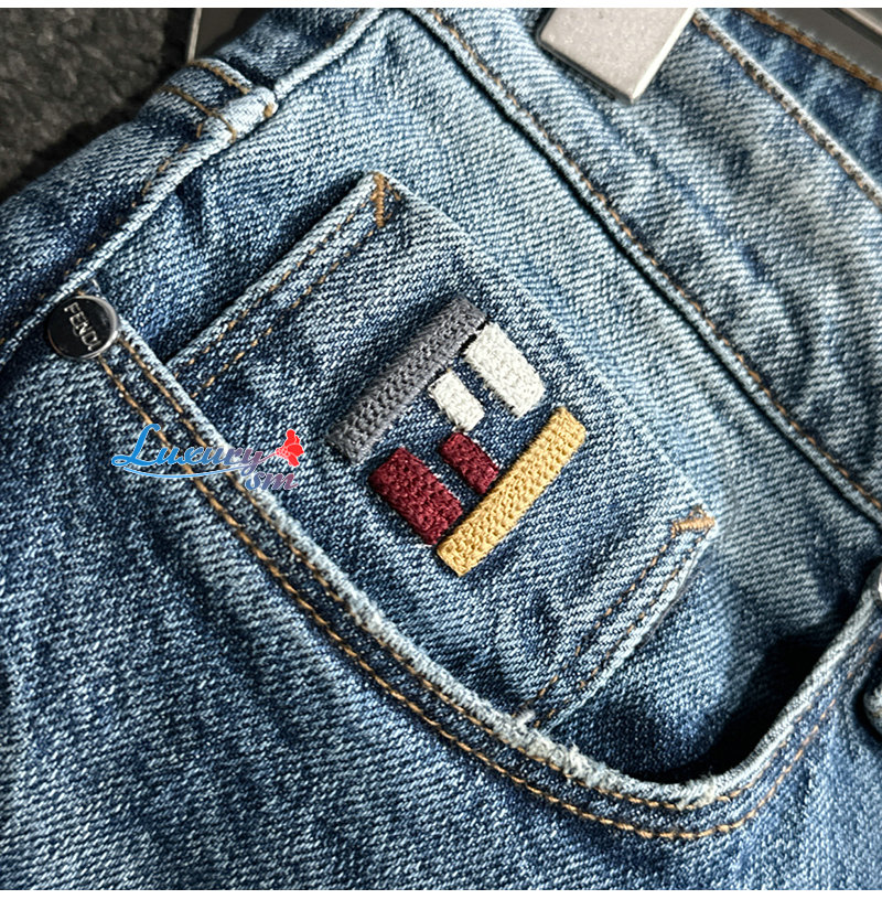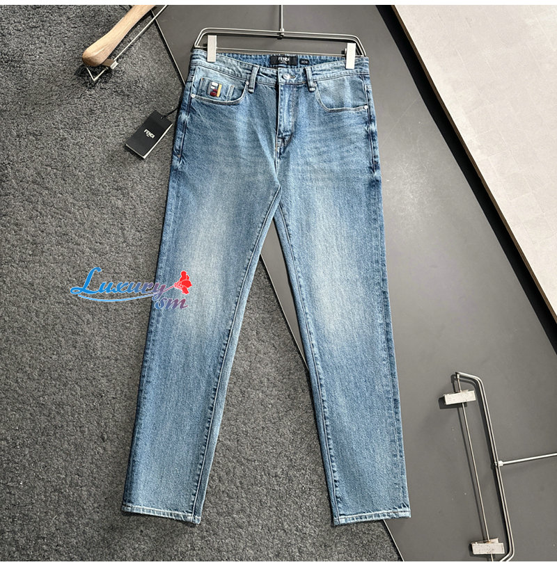 FENDI-02222 펜디 라이트 블루 FF 아플리케 장식 청바지 남성용