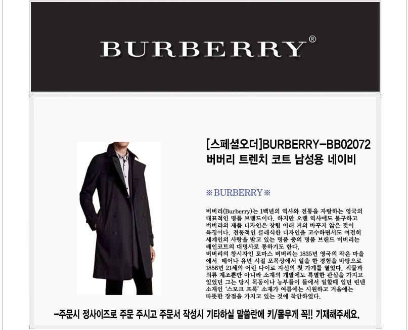 [스페셜오더]BURBERRY-BB02072 버버리 트렌치 롱 코트 남성용 네이비