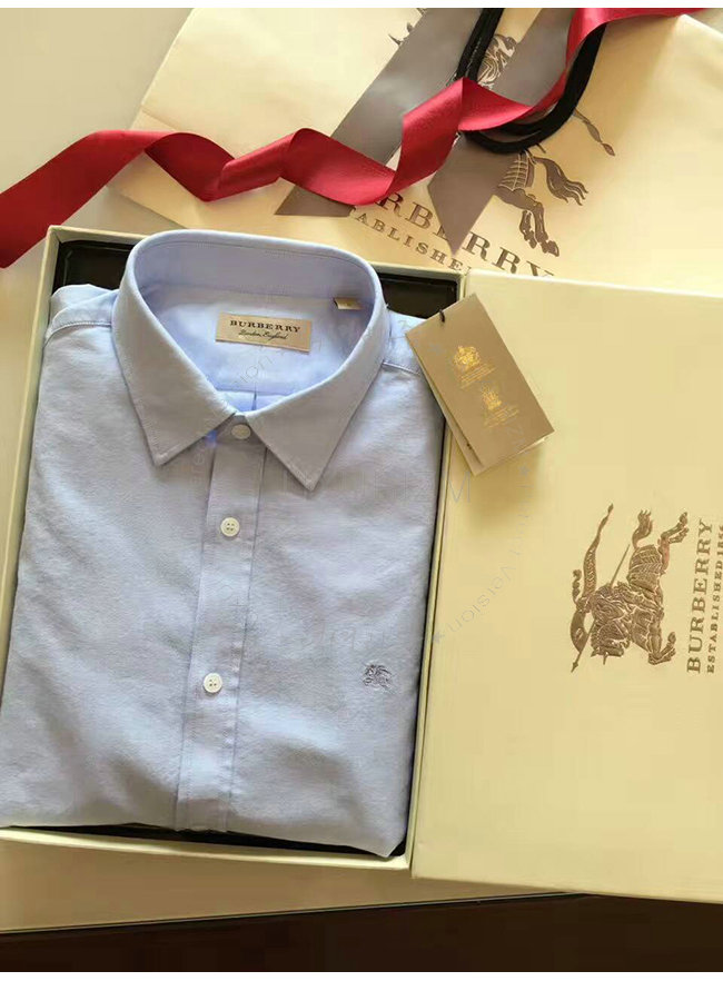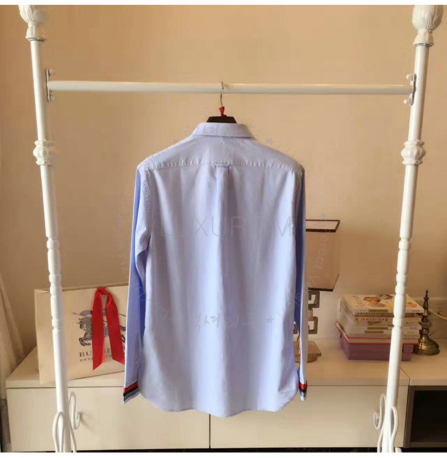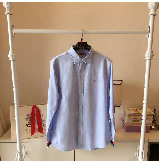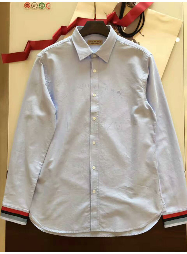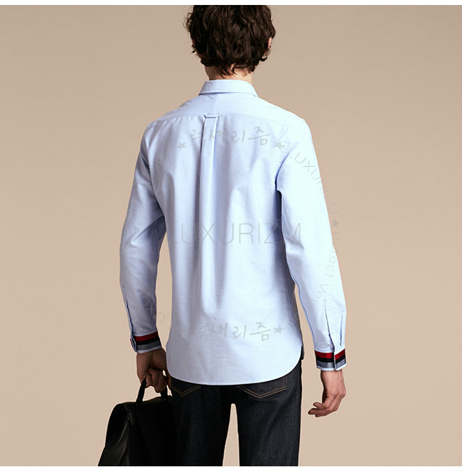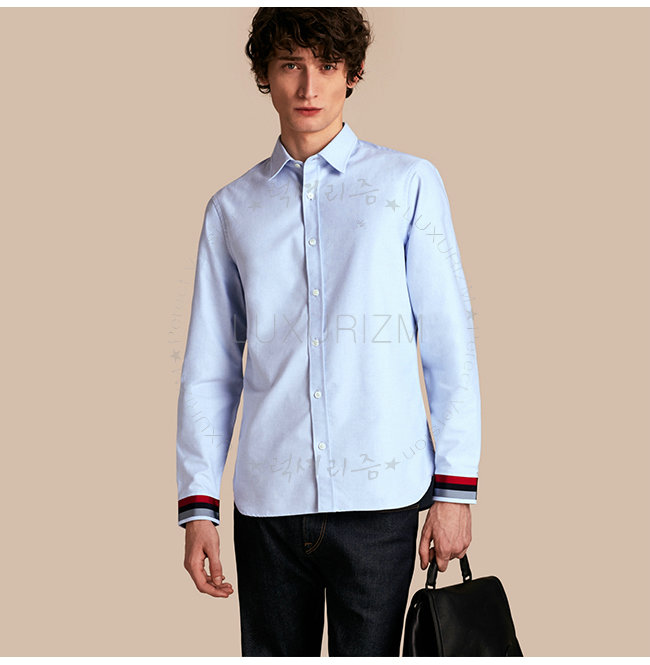 BURBERRYI-40437321 버버리 콘플라워 블루 레지멘탈 커프 디테일 옥스포드 코튼 셔츠 남성용