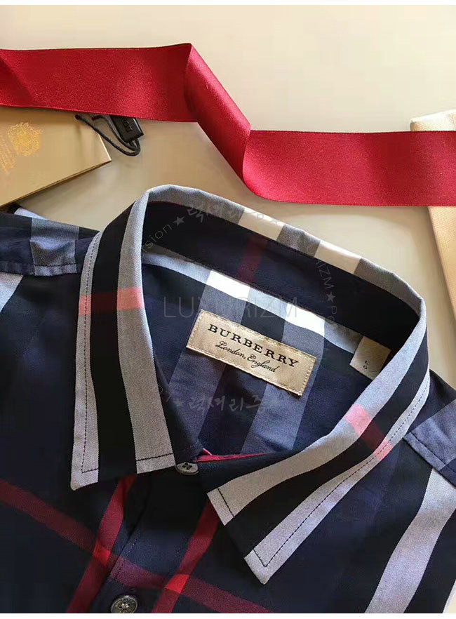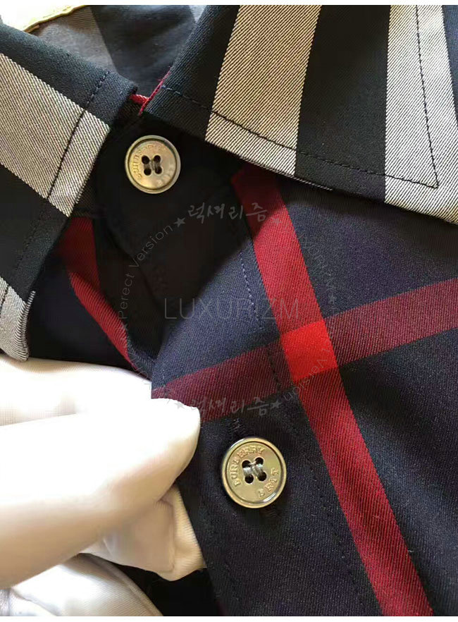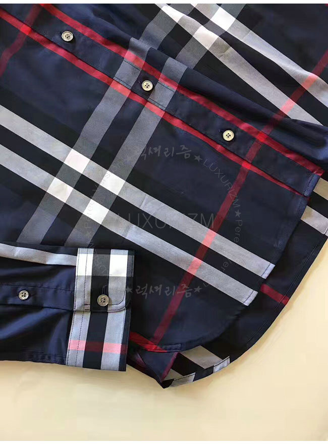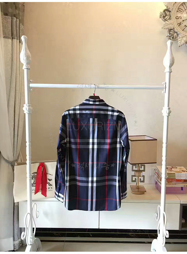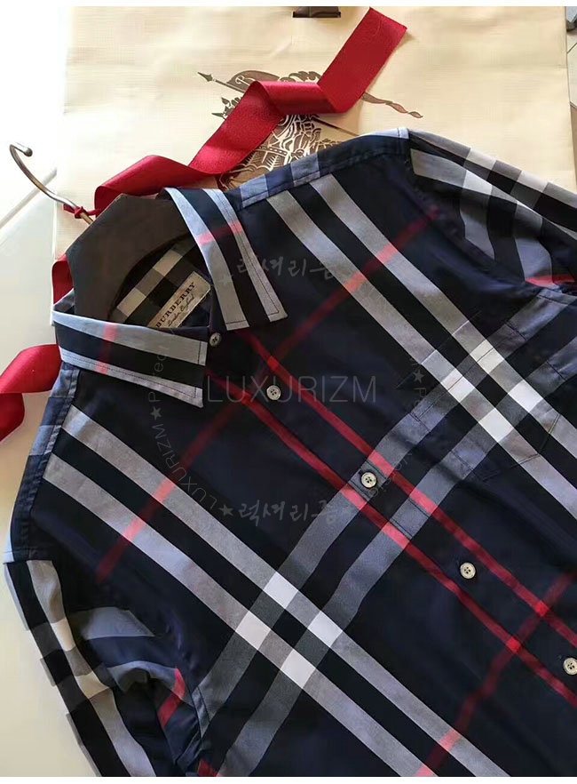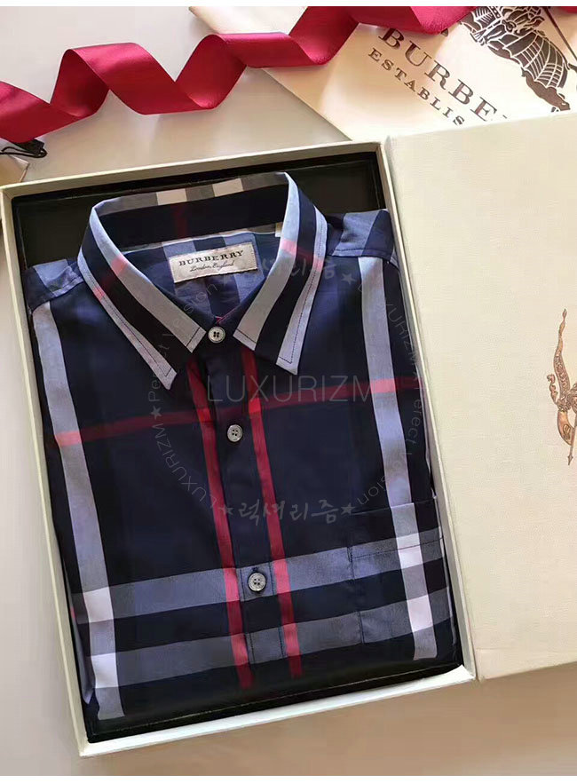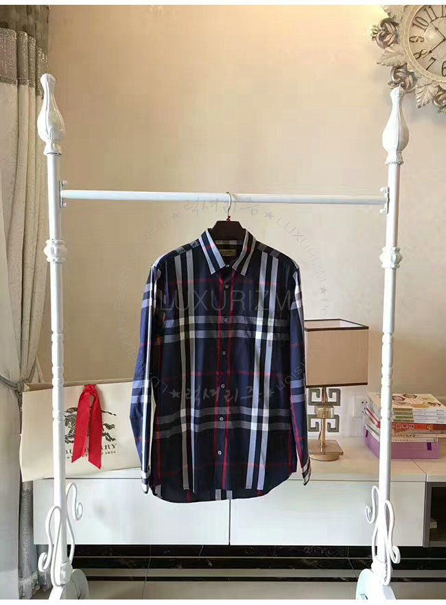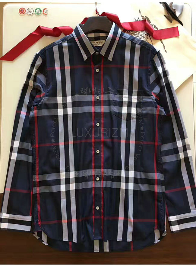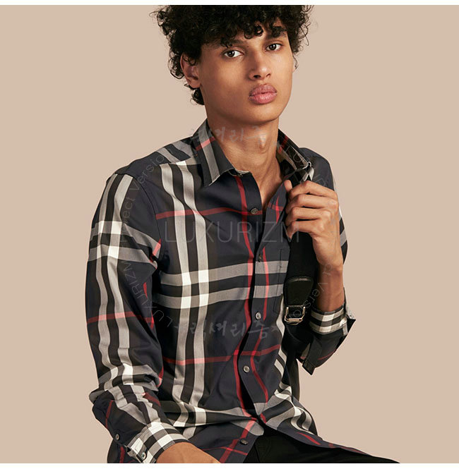 BURBERRYI-40067311 버버리 네이비 체크 스트레치 코튼 셔츠 남성용