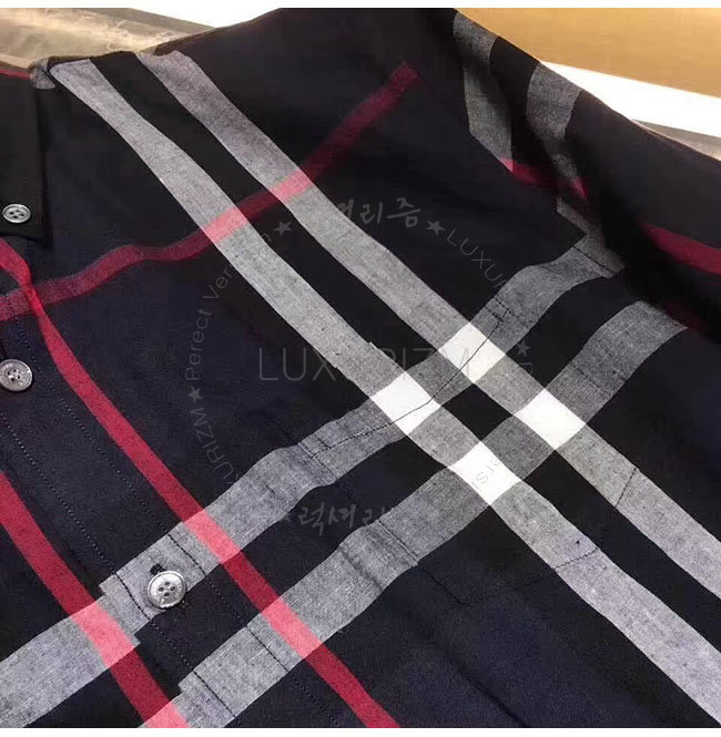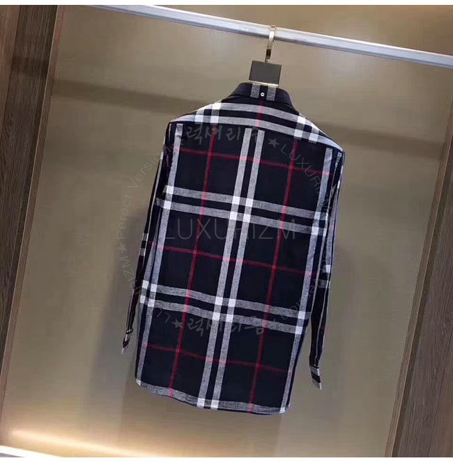 BURBERRY-40591291 버버리 네이비 체크 코튼 플란넬 셔츠 남성용