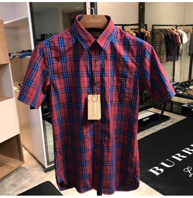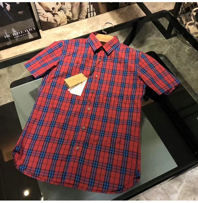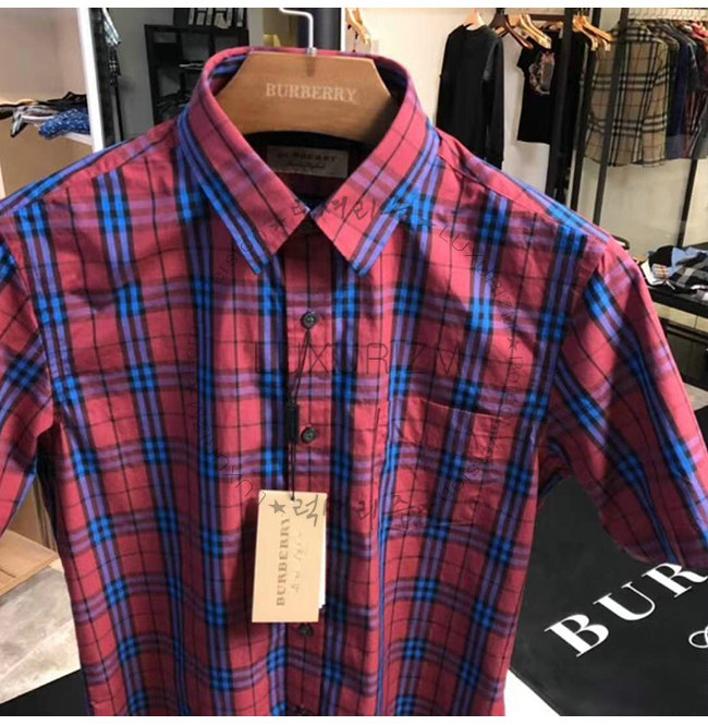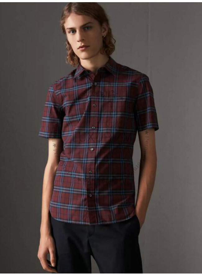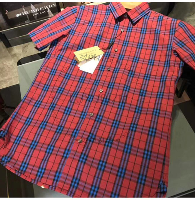 [스페셜오더]BURBERRY-80029271 버버리 쇼트 슬리브 크림슨 레드 체크 셔츠