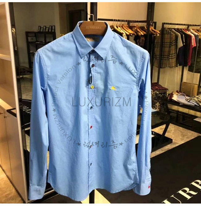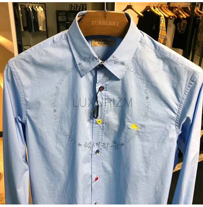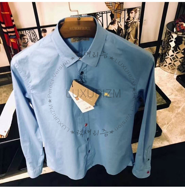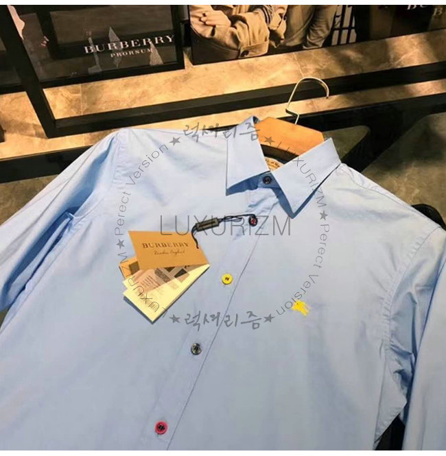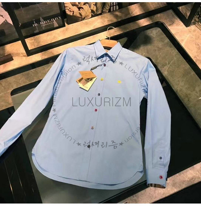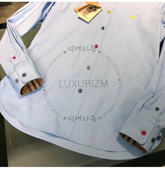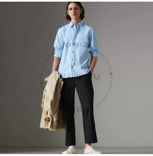 [스페셜오더]BURBERRY-80030831 버버리 컨트라스트 버튼 스트레치 페일 블루 코튼 셔츠