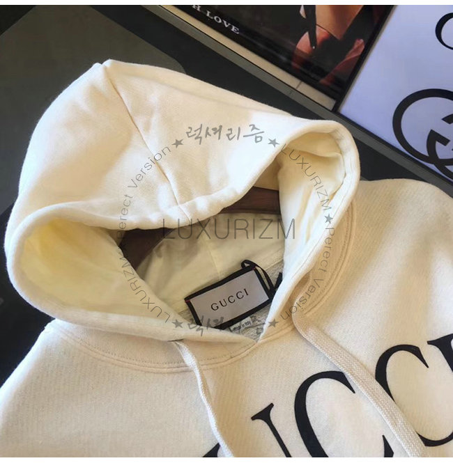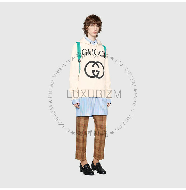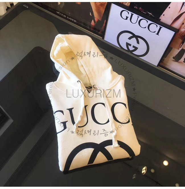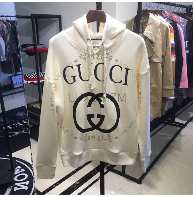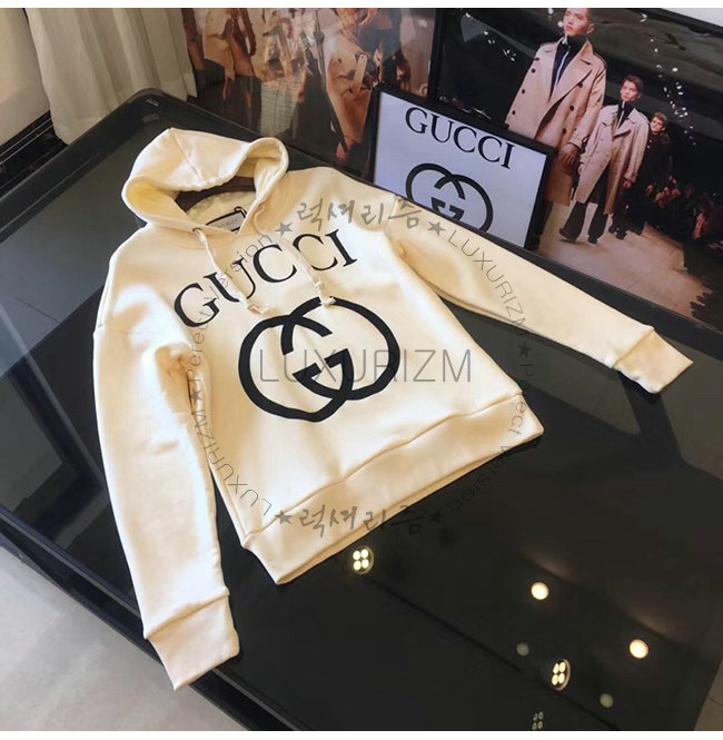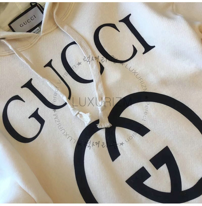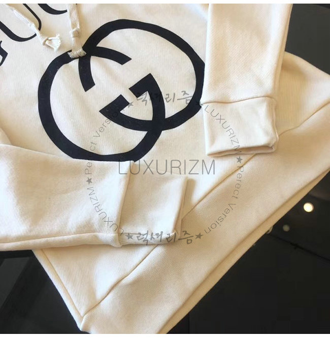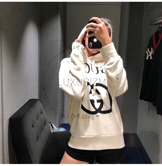 GUCCI-475374 9524 구찌 화이트 코튼 인터로킹 G 장식 후드 스웨트셔츠