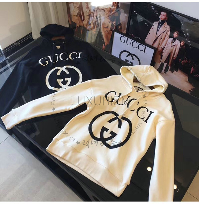 GUCCI-475374 1289 구찌 블랙 코튼 인터로킹 G 장식 후드 스웨트셔츠 가격 : 200,000원