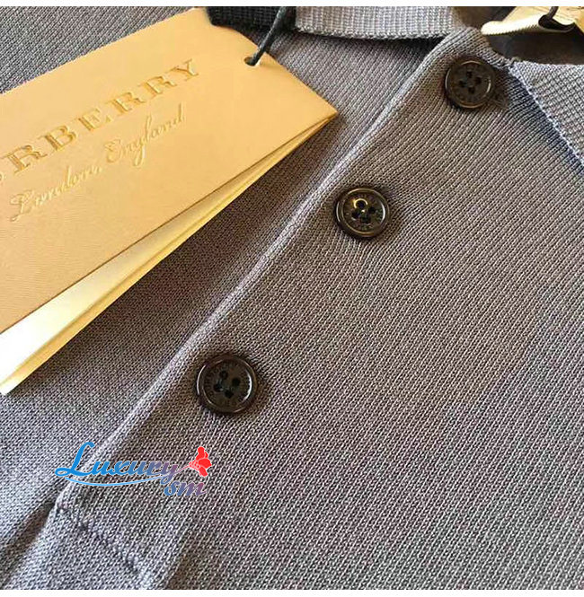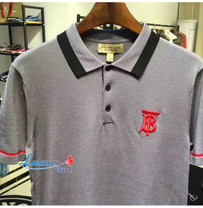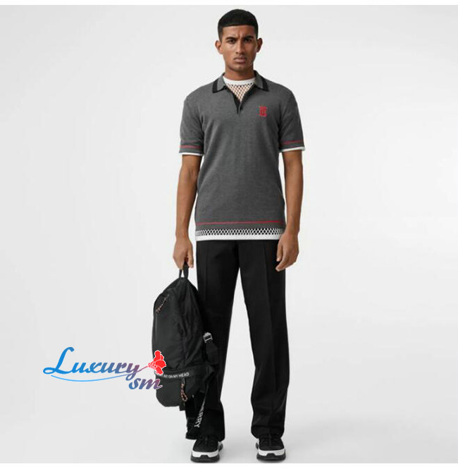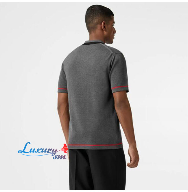 BURBERRY-80094371 버버리 다크 그레이 멜란지 코튼 모노그램 모티프 티핑 폴로셔츠