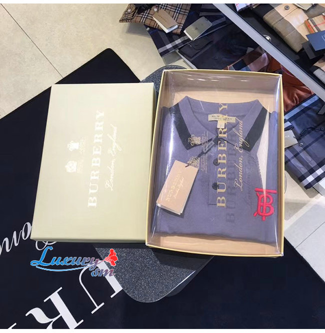 BURBERRY-80094371 버버리 네이비 코튼 모노그램 모티프 티핑 폴로셔츠 가격 : 160,000원
