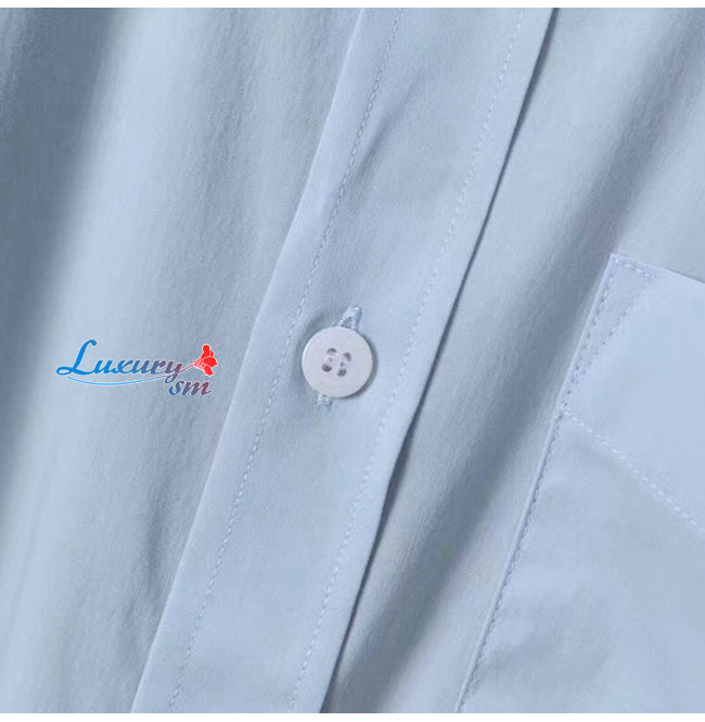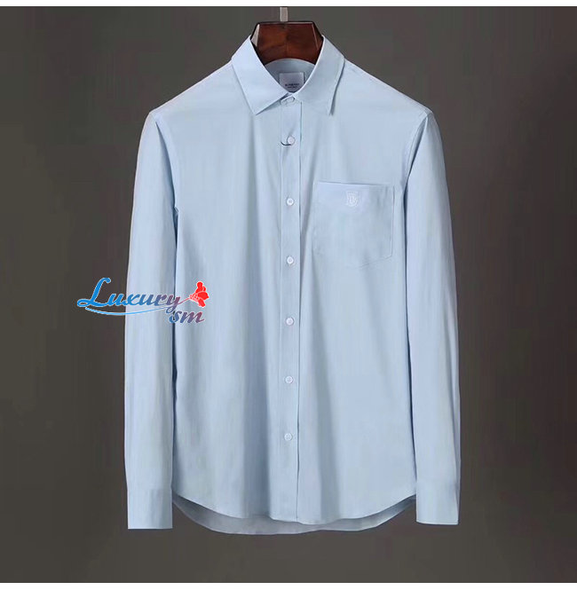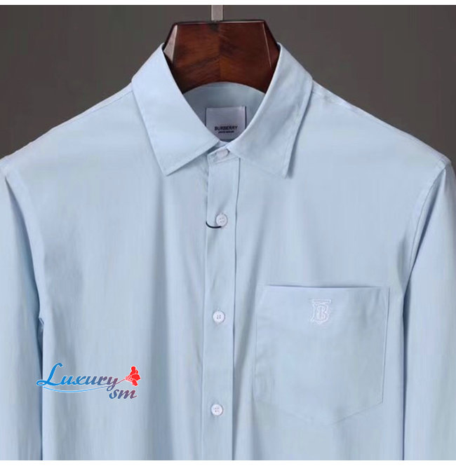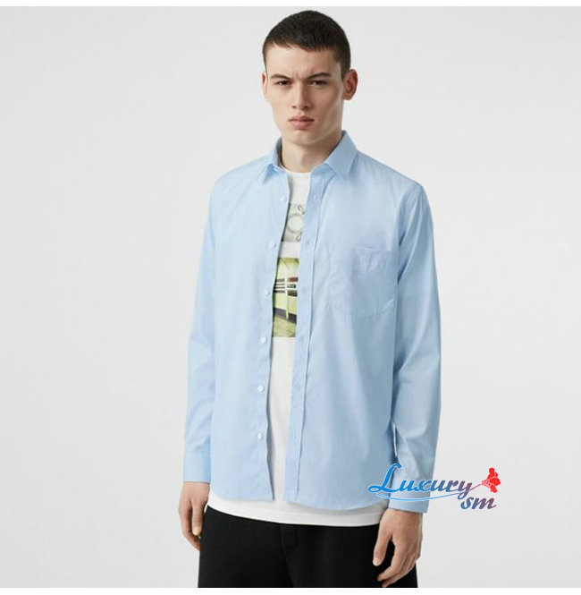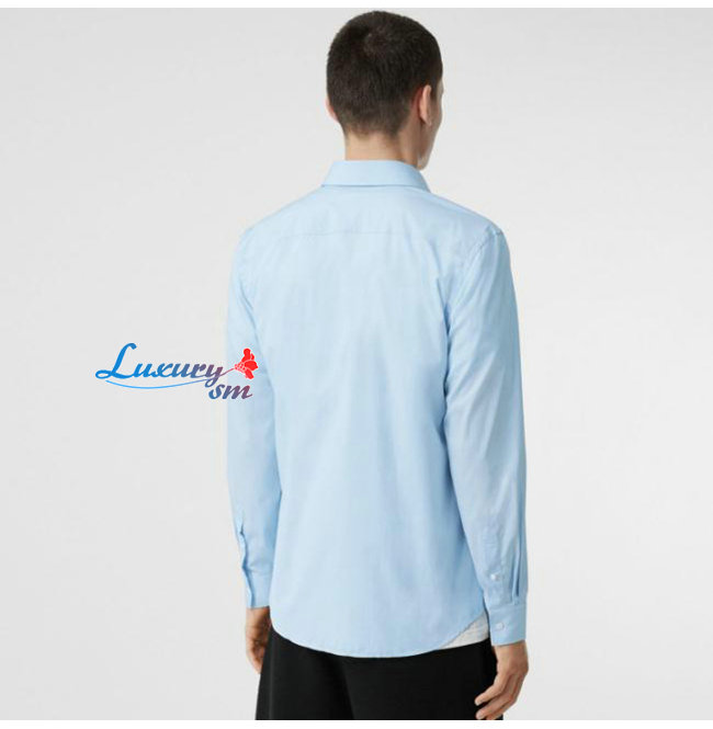 BURBERRY-80113691 버버리 페일 블루 모노그램 모티프 스트레치 코튼 포플린 셔츠