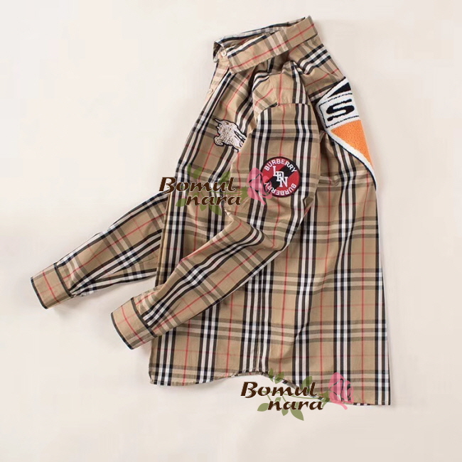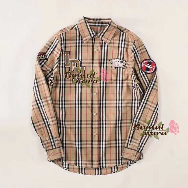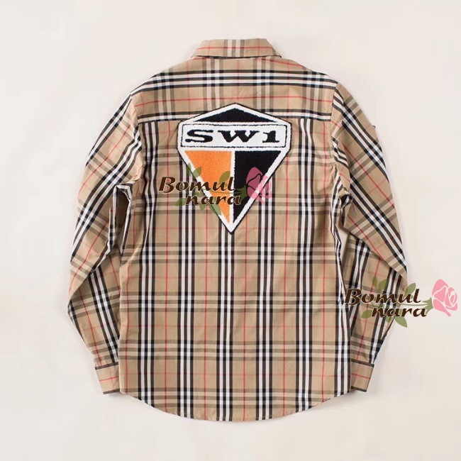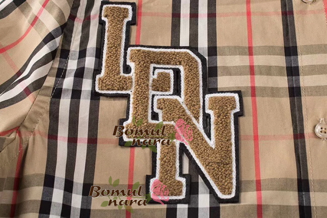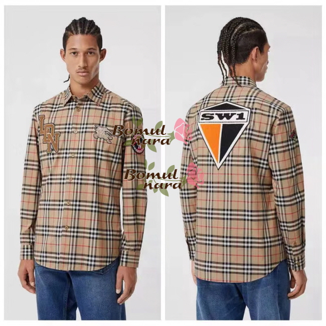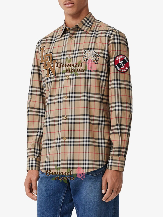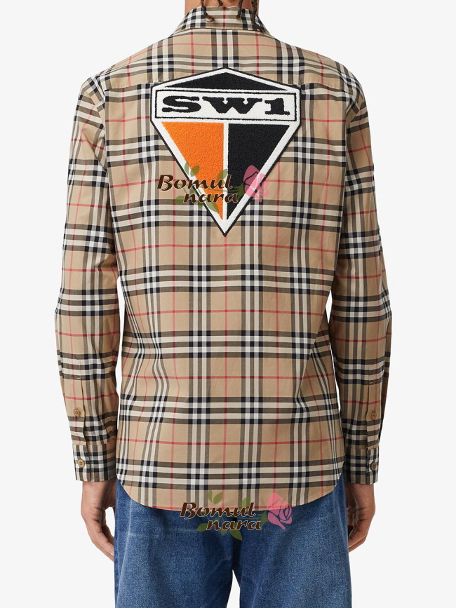 BURBERRY-80245291 버버리 클래식핏 그래픽 로고 아플리케 남성 체크 코튼 셔츠
