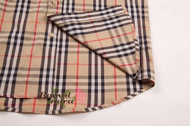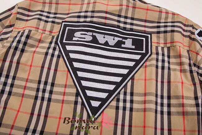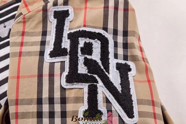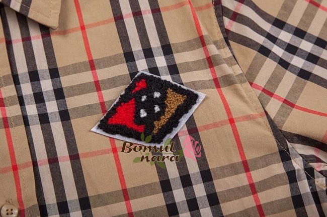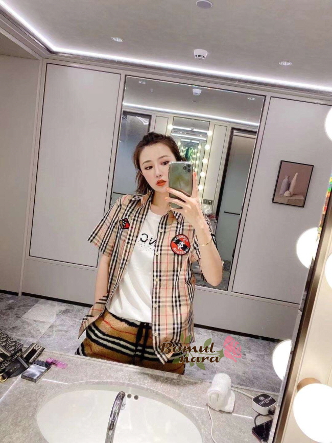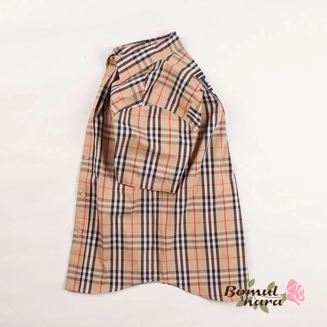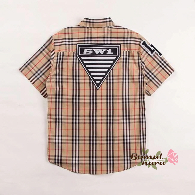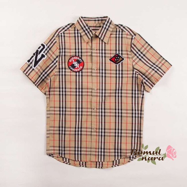 BURBERRY-80245290 버버리 오버사이즈 그래픽 로고 아플리케 남녀공용 체크 코튼 반팔 셔츠