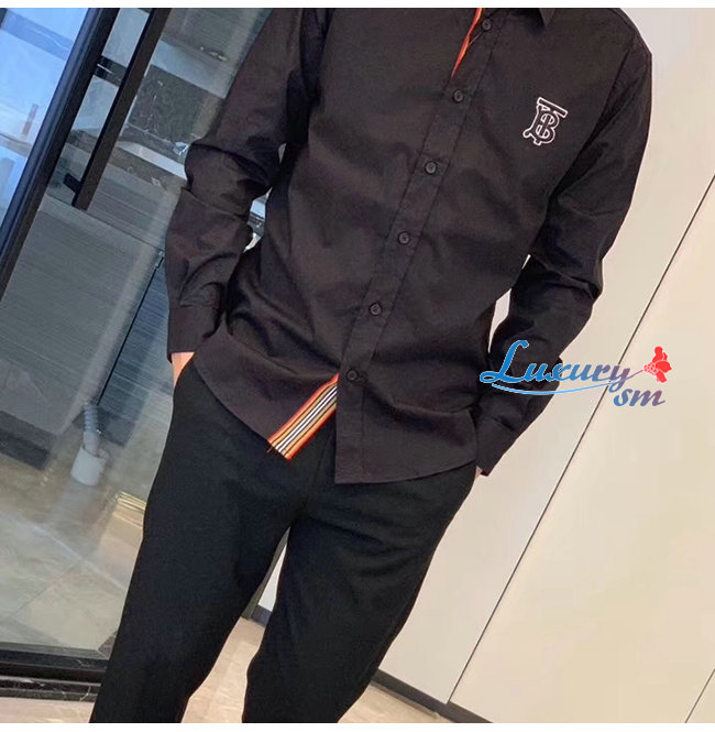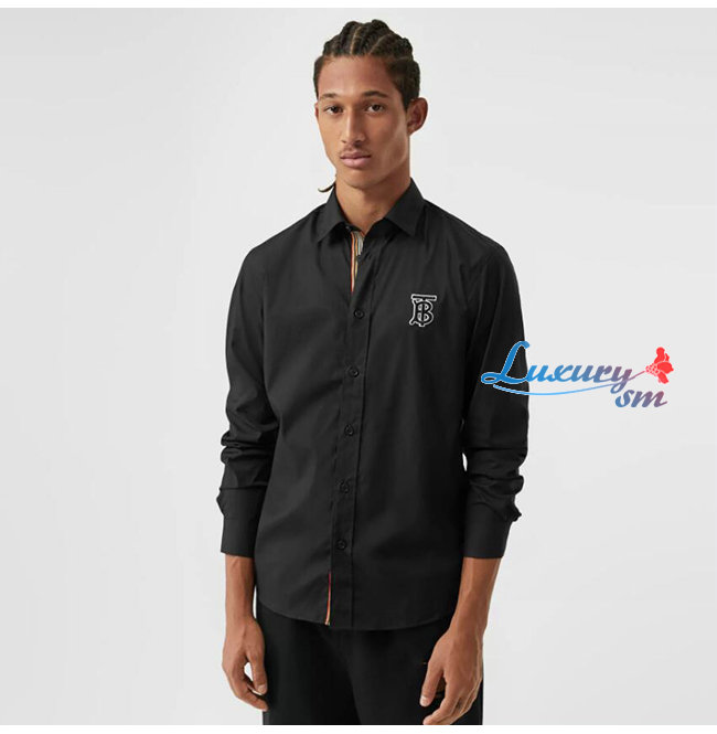 BURBERRY-80234631 버버리 블랙 모노그램 모티프 스트레치 코튼 포플린 셔츠