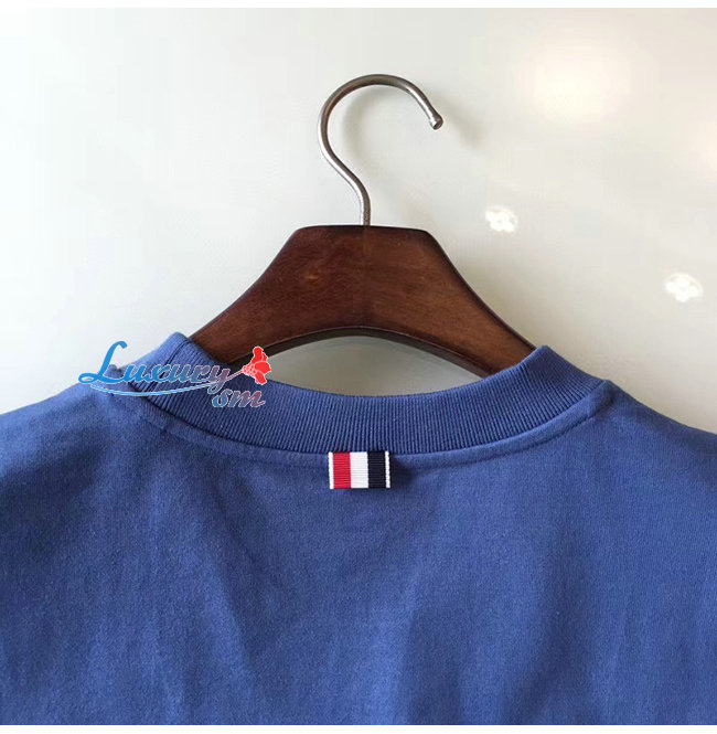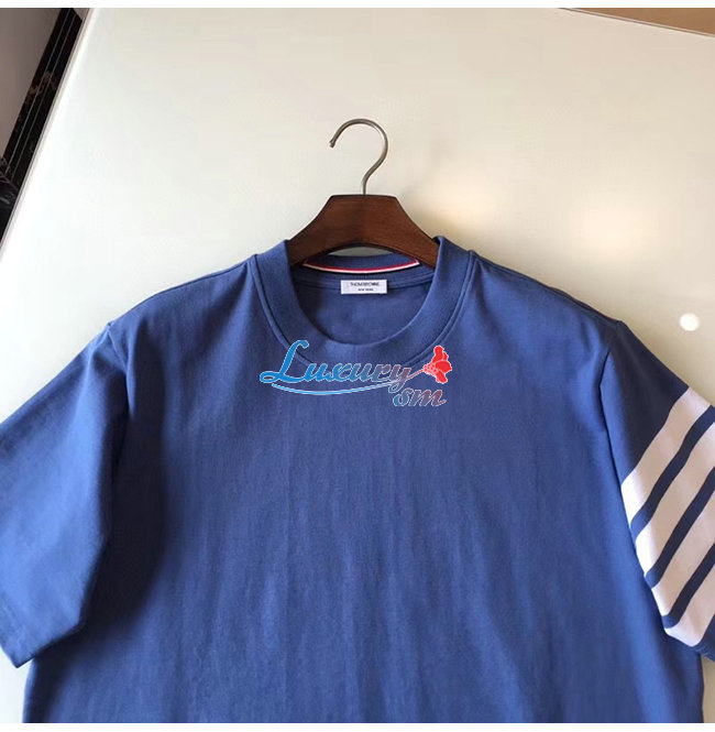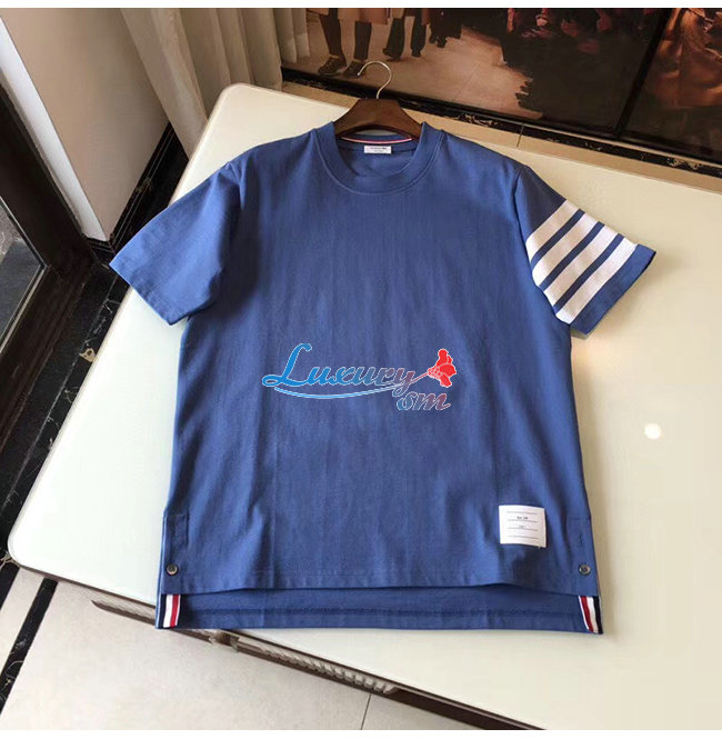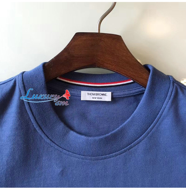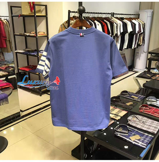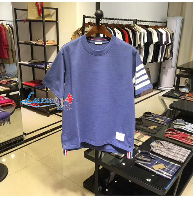 THOM BROWNE-052714 톰 브라운 라이트 블루 코튼 스트라이프 장식 티셔츠 남성용