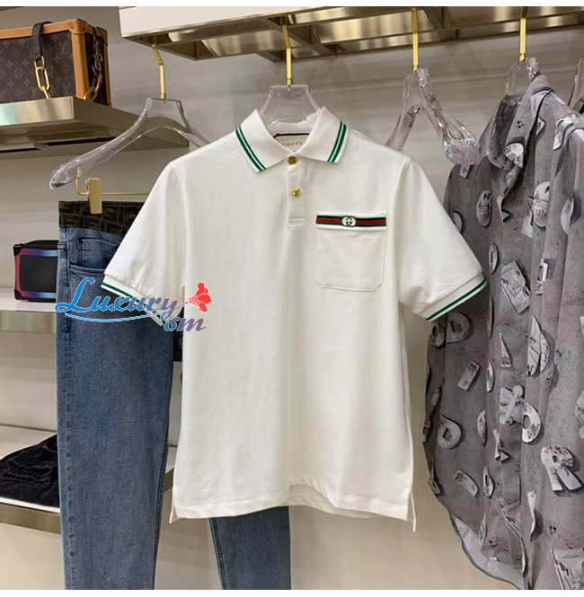 GUCCI-628339 9061 구찌 화이트 코튼 웹(Web) 인터로킹 G 디테일 폴로