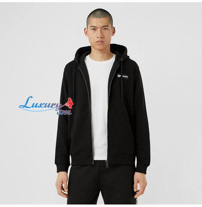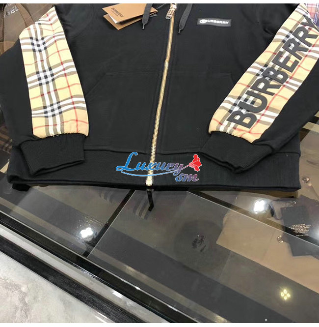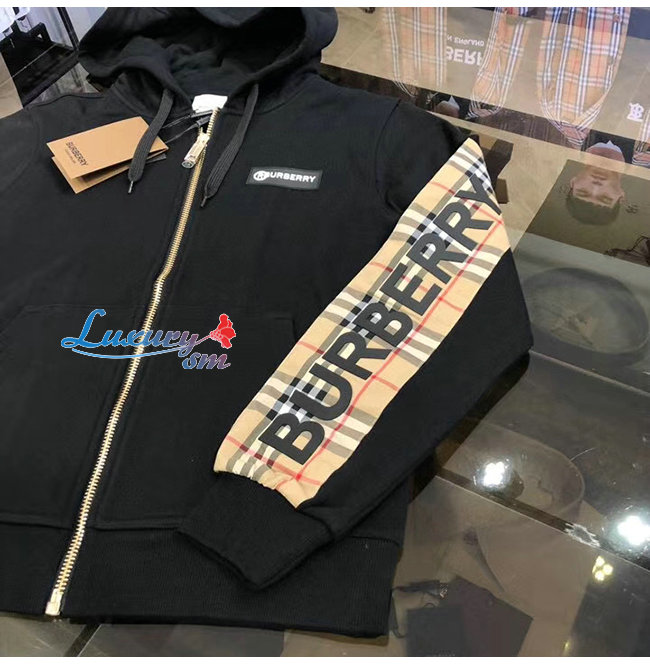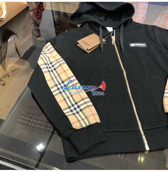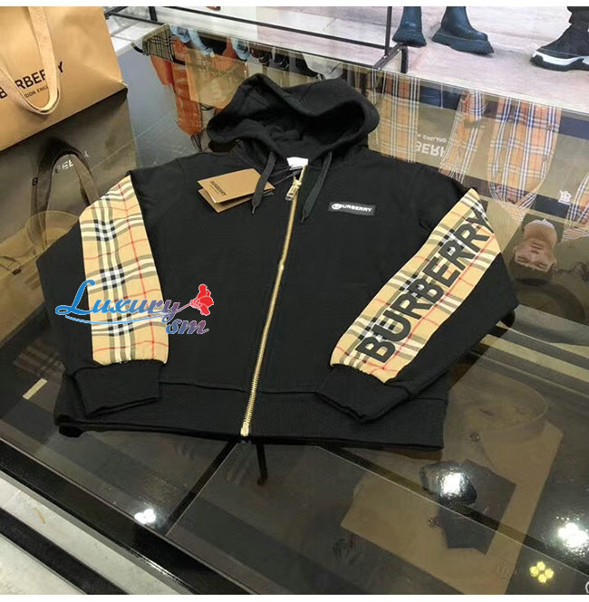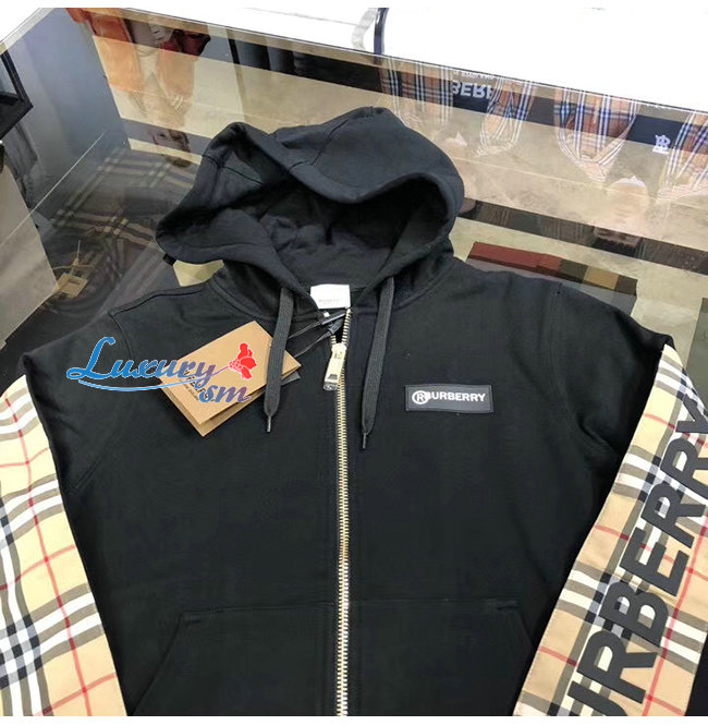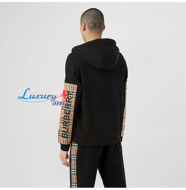 BURBERRY-80256841 버버리 블랙 로고 프린트 빈티지 체크 패널 후드 톱 남여공용