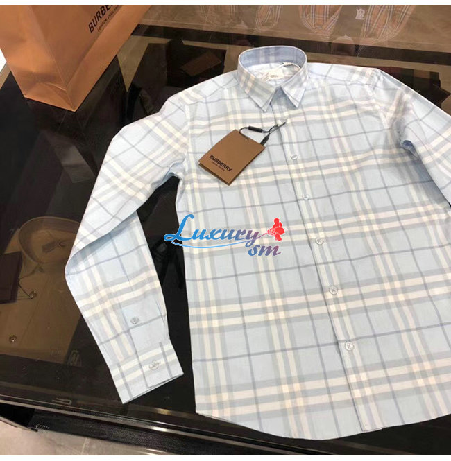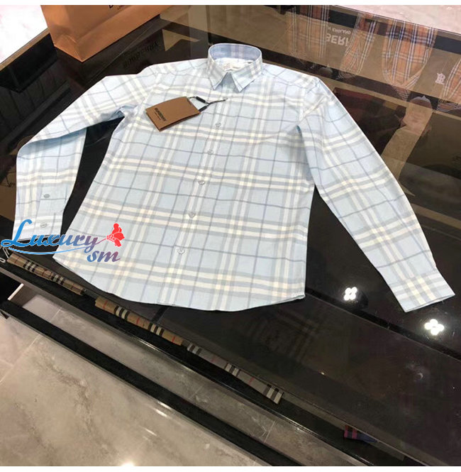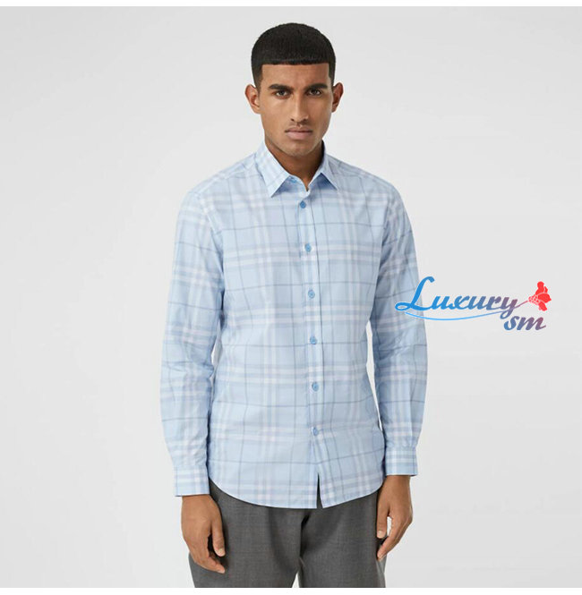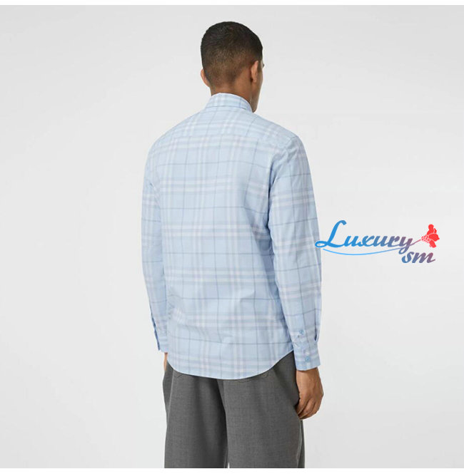 BURBERRY-80258491 버버리 더스티 블루벨 체크 코튼 포플린 셔츠