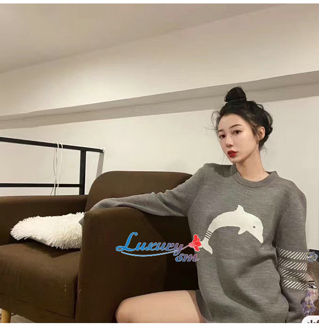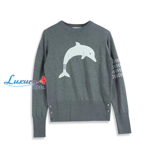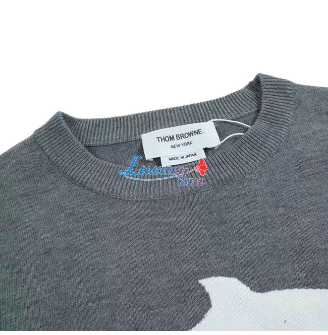 THOM BROWNE-10157 톰 브라운 그레이 캐시미어 프린트 장식 스웨터 남여공용