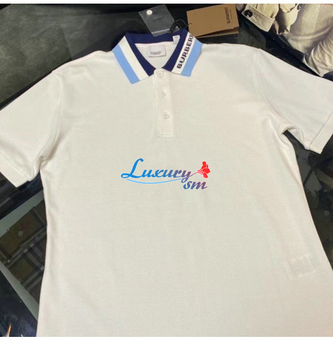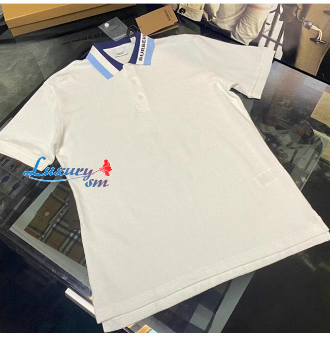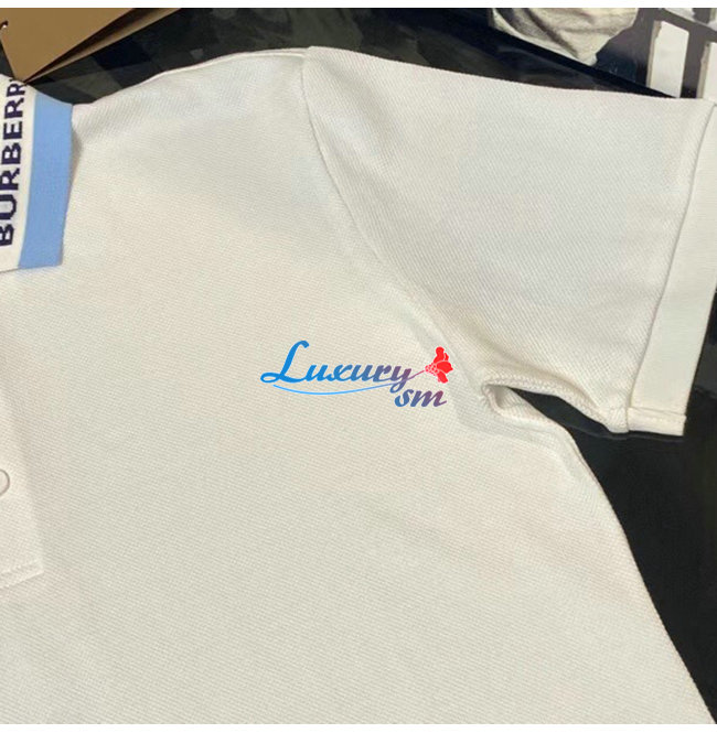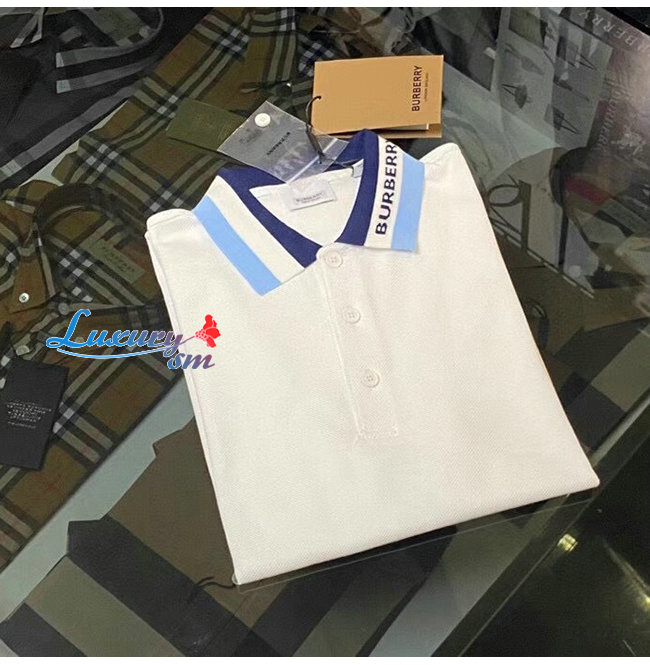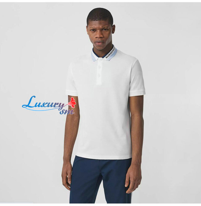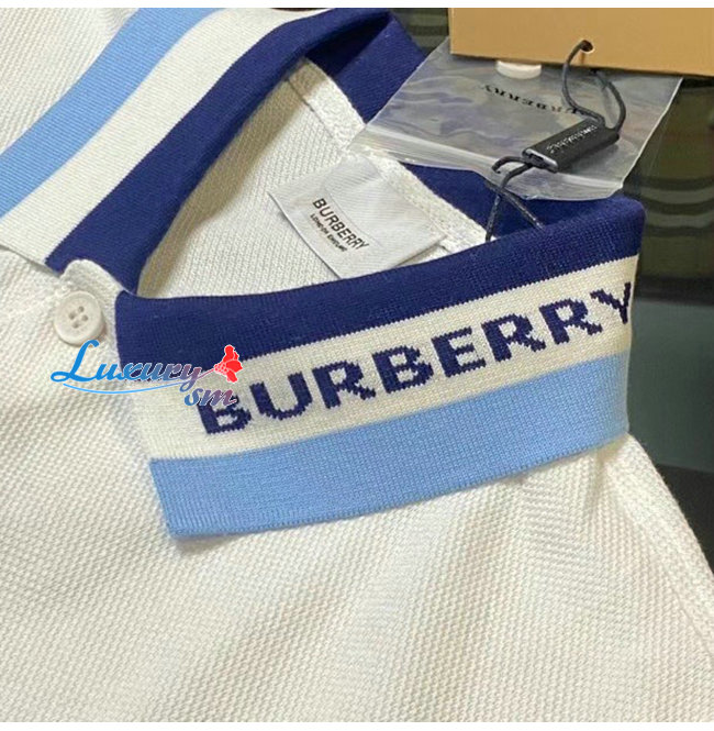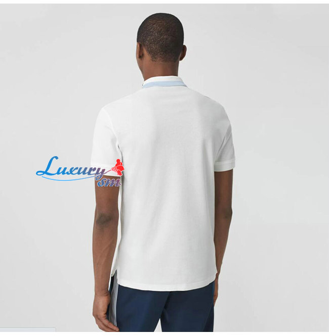 BURBERRY-80383681 버버리 화이트 로고 디테일 코튼 피케 폴로셔츠