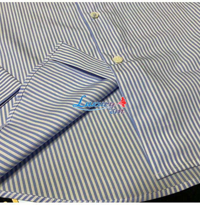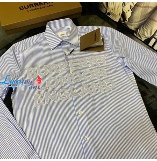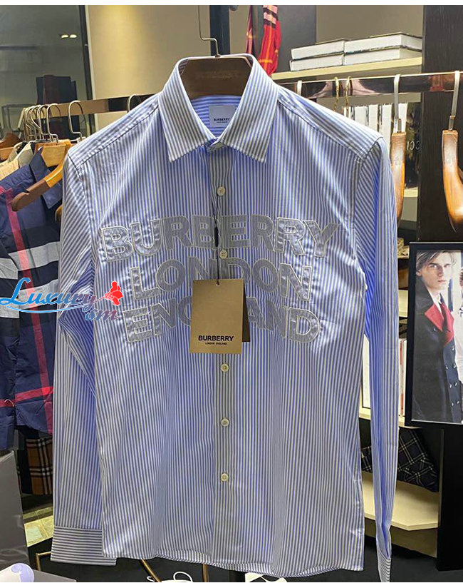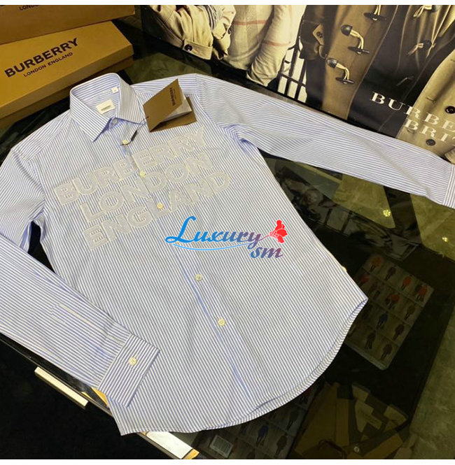 BURBERRY-80391091 버버리 블루 로고 아플리케 스트라이프 포플린 셔츠
