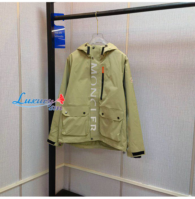 MONCLER-07259 몽클레어 베이지 나일론 MONCLER 프린트 장식 바람막이 후드 쟈켓 남성용