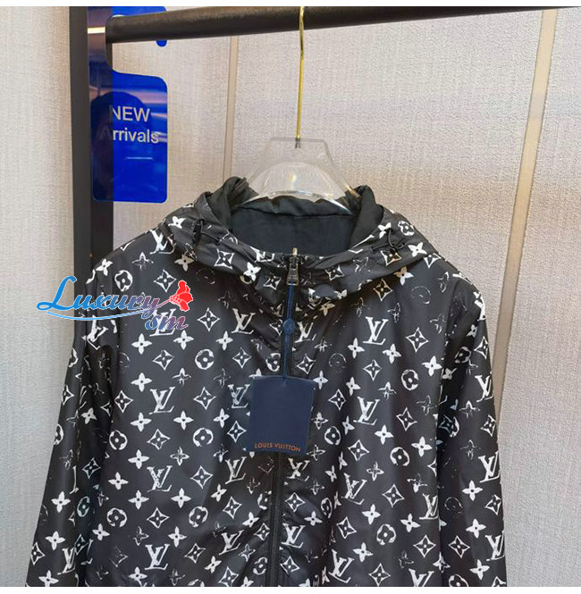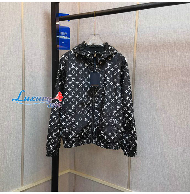LOUIS VUITTON-072114 루이비통 블랙 나일론 모노그램 프린트 장식 바람막이 후드 쟈텟 남성용