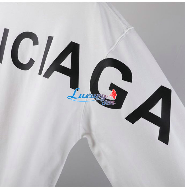BALENCIAGA-091311 발렌시아가 화이트 코튼 BALENCIAGA 프린트 장식 스웨트셔츠 남여공용