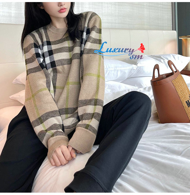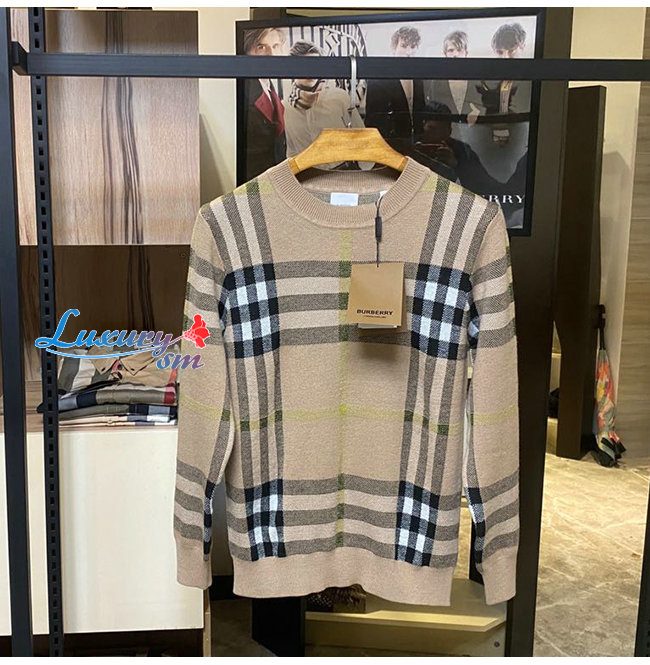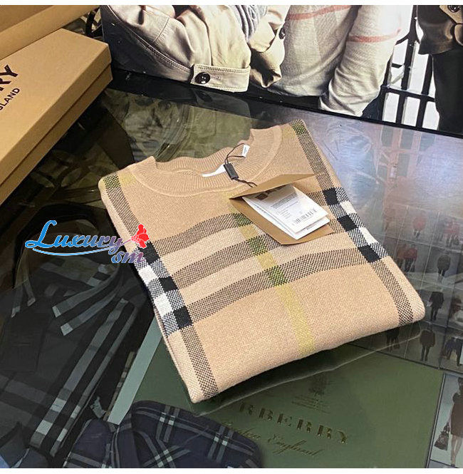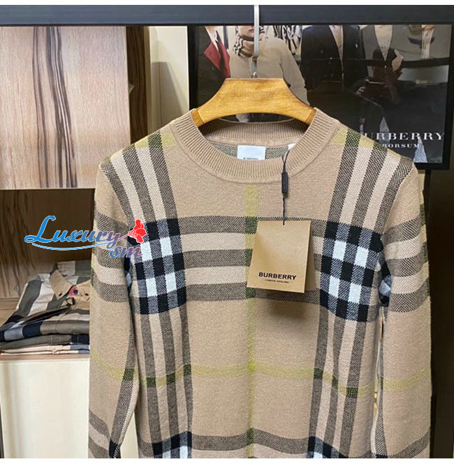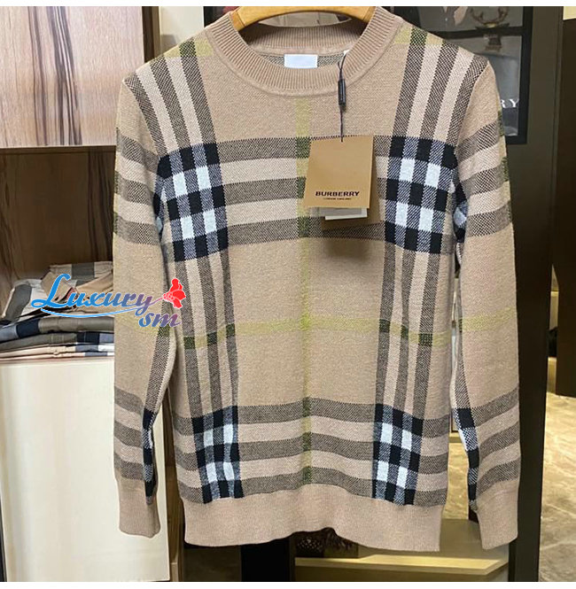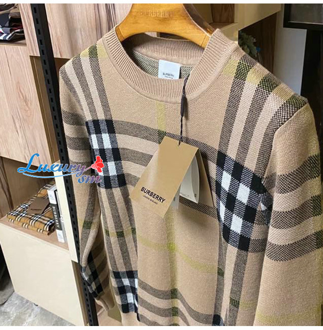 BURBERRY-02141 버버리 베이지 니트 코튼 체크무늬 스웨터 남여공용