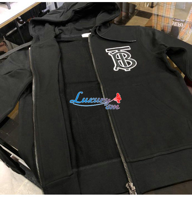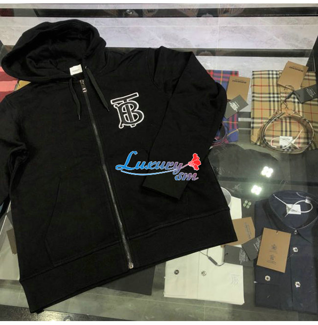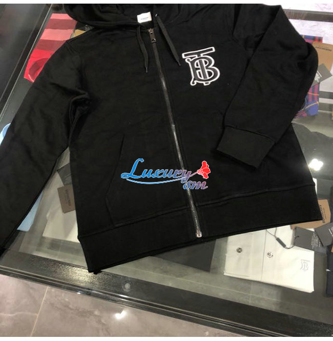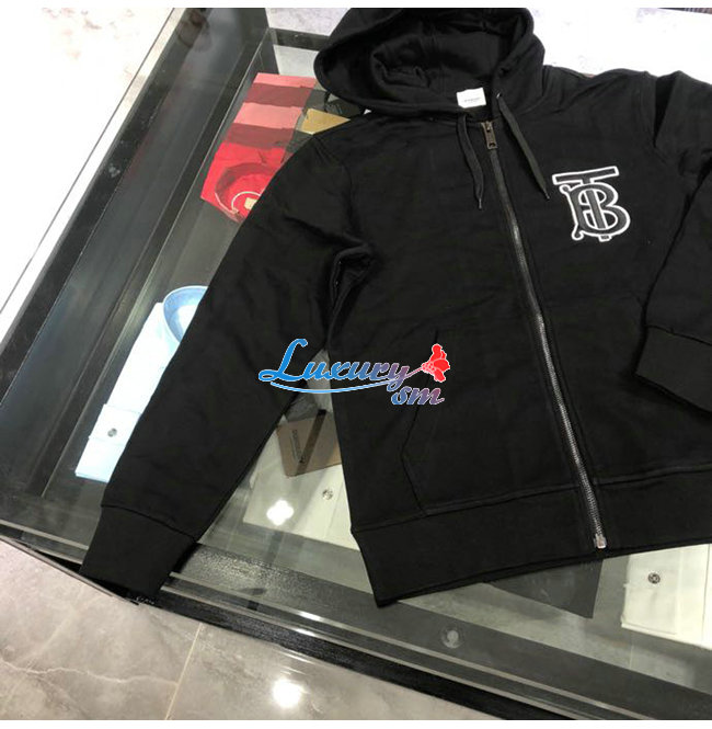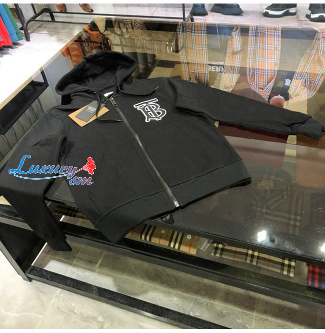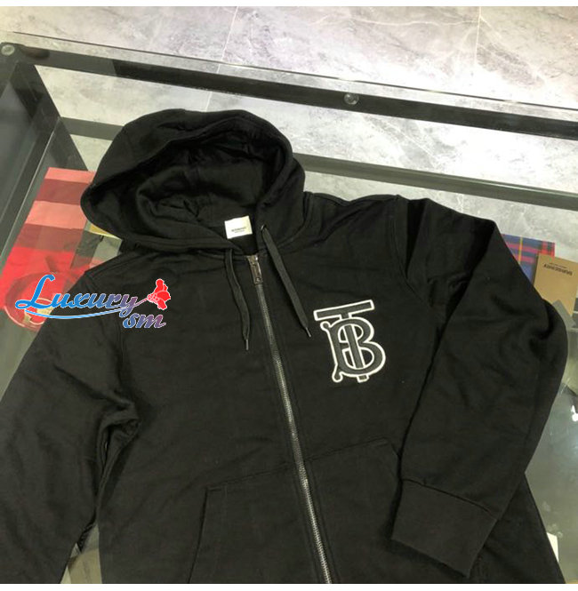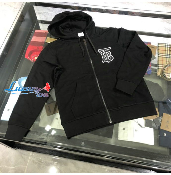 BURBERRY-02136 버버리 블랙 코튼 TB 로고 아플리케 장식 후드 쟈켓 남성용