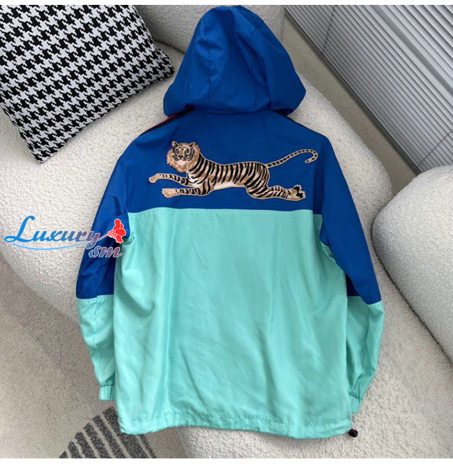 GUCC*-683254 4309 구찌 블루/그린 타이거 패치 나일론 캔버스 재킷