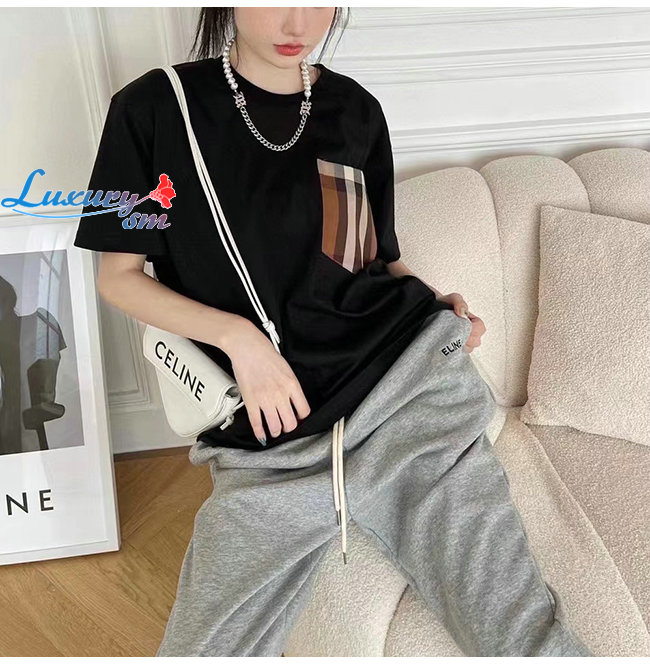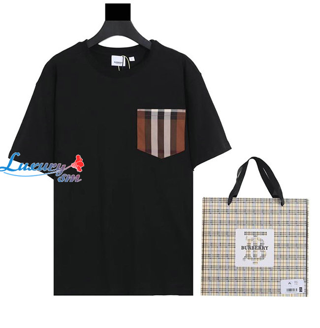 BURBER**-022619 버버리 블랙 체크 무늬 포켓 티셔츠 남여공용