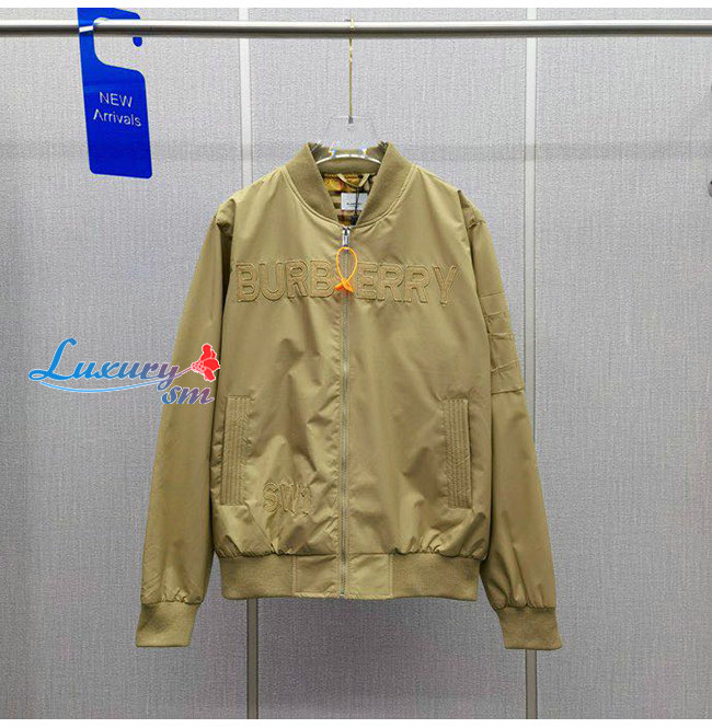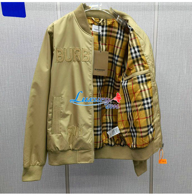BURBER**-03116 버버리 베이지 아플리케 장식 봄버 재킷 남성용