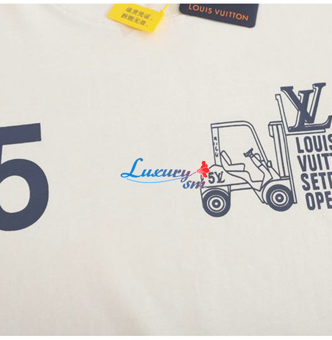 LOUIS VUITT**-030812 루이비통 아이보리 프린트 장식 티셔츠 남여공용