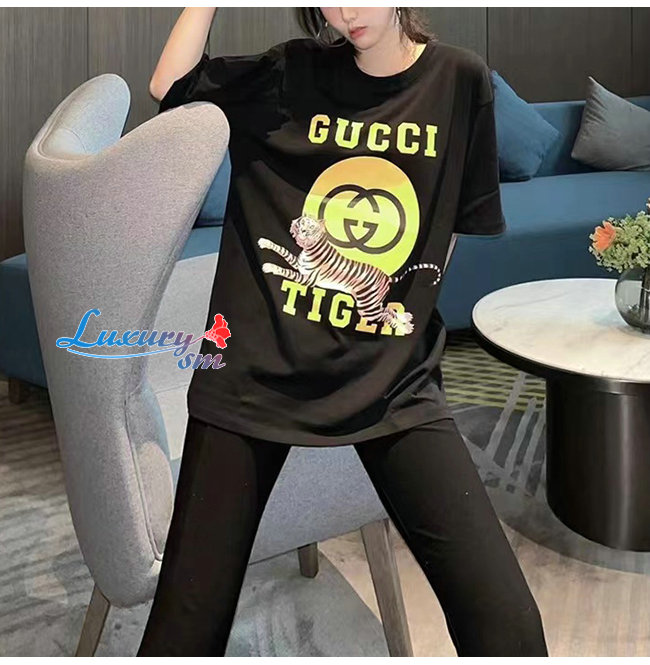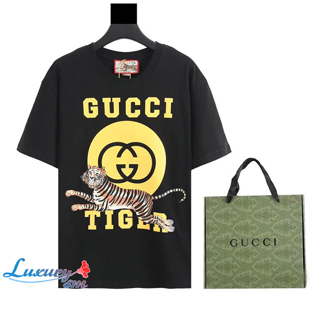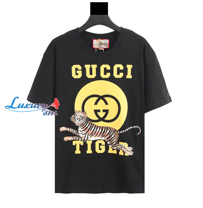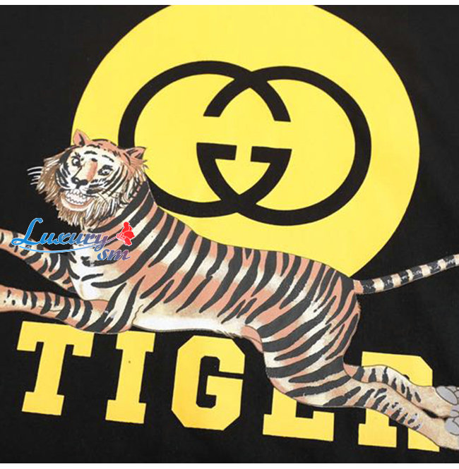 GUCC*-030717 구찌 블랙 타이거 프린트 장식 티셔츠 남여공용