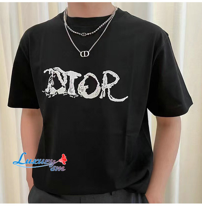 DIO*-03075 디올 블랙 DIOR 프린트 장식 티셔츠 남여공용