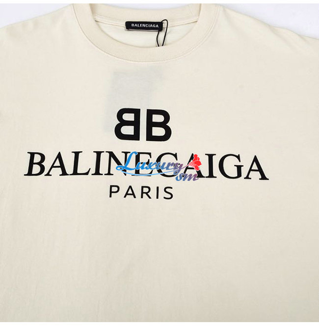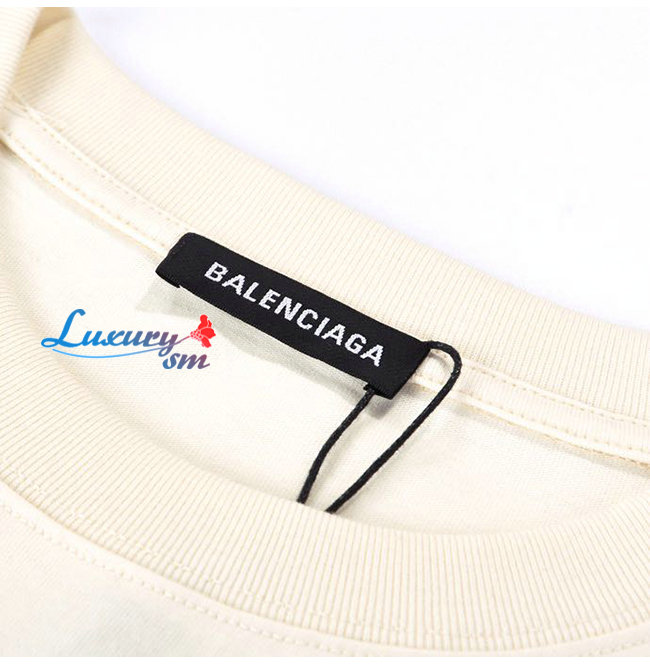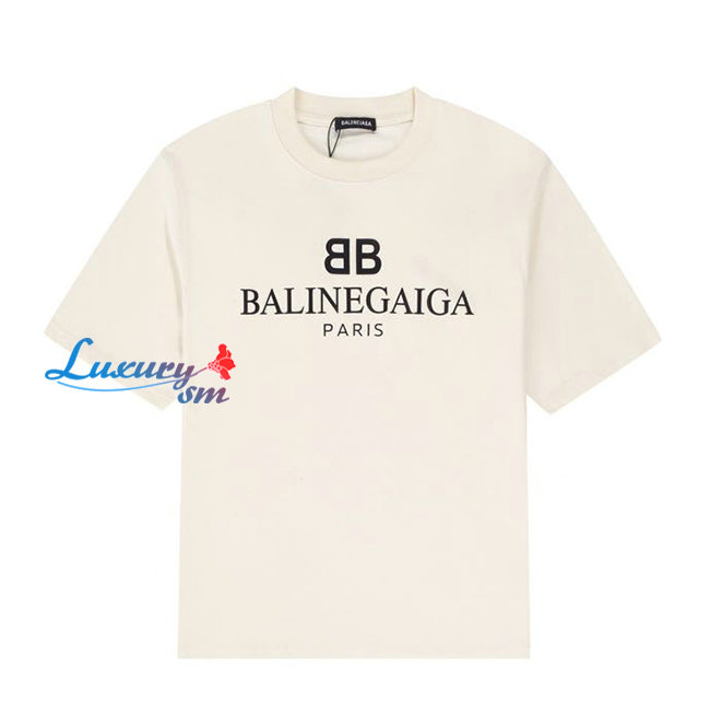 BALENCIA**-03068 발렌시아가 아이보리 프린트 장식 티셔츠 남여공용