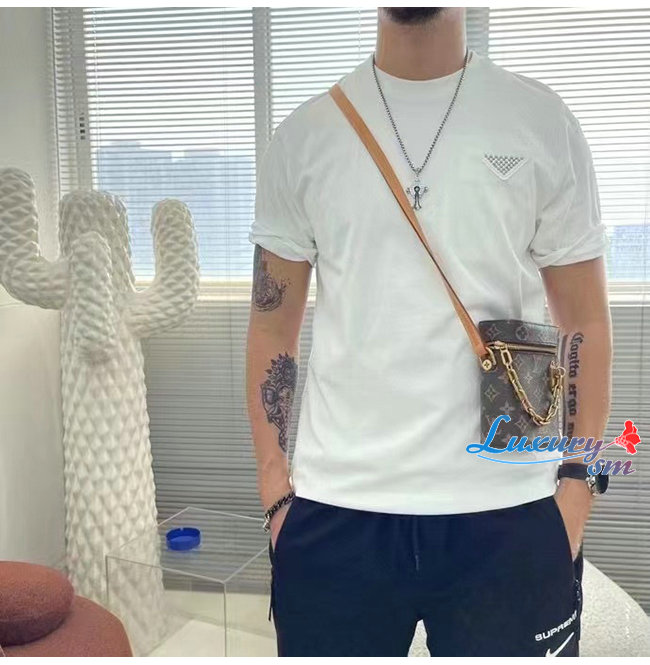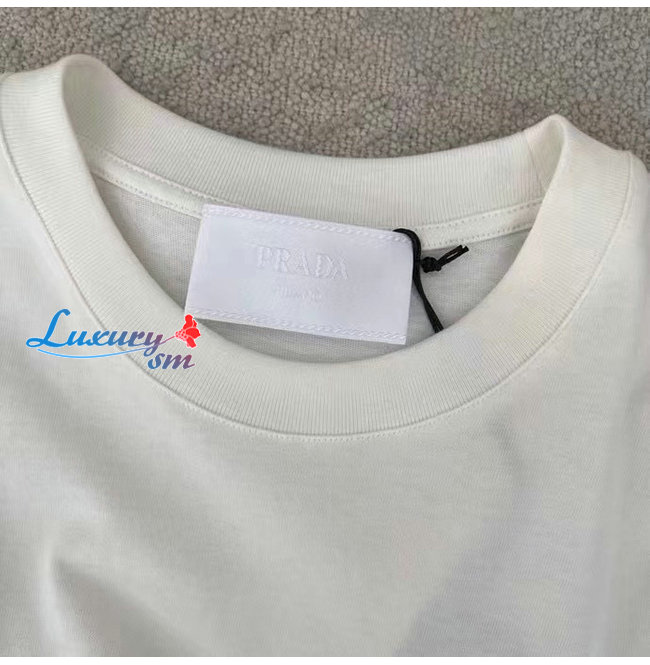 PRAD*-03198 프라다 화이트 코튼 티셔츠 남성용