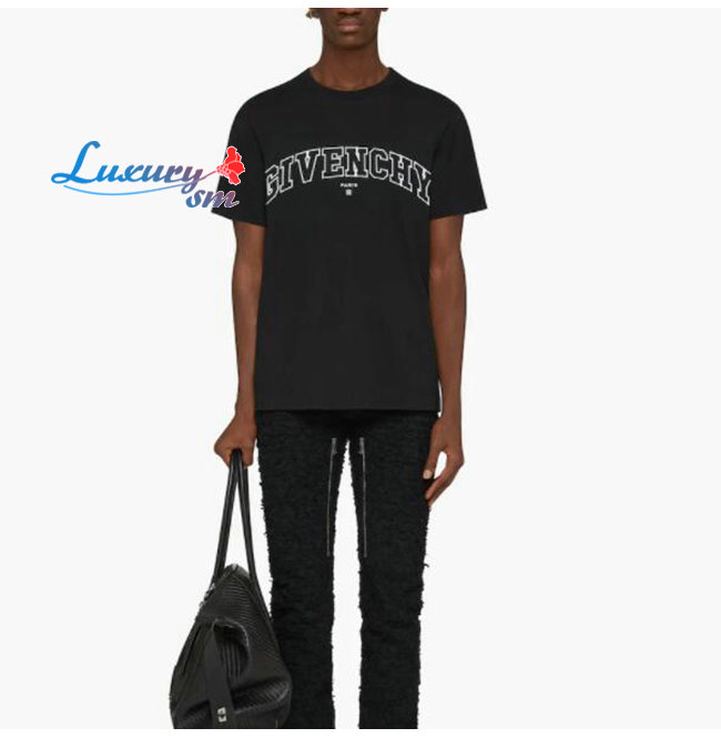 GIVENC**-BM71CW3 지방시 블랙 GIVENCHY College 아플리케 티셔츠