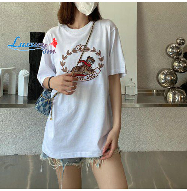 BURBERRY-061315 버버리 화이트 타이거 아플리케 장식 티셔츠 남여공용