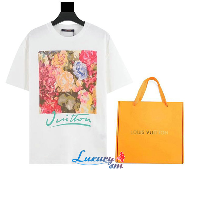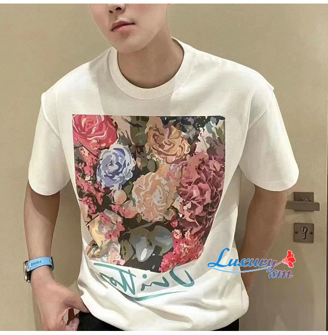 LOUIS VUITTON-07286 루이비통 화이트 플라워 프린트 장식 티셔츠 남성용