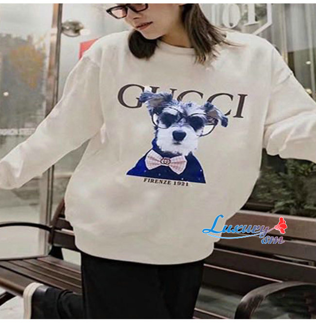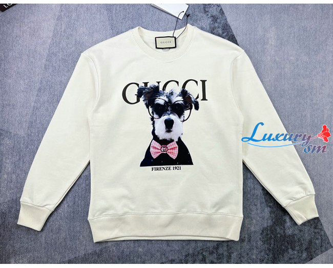 GUCCI-08123 구찌 아이보리 도그 프린트 장식 스웨트셔츠 남여공용