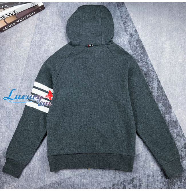 THOM BROWNE-081210 톰 브라운 다크 그레이 스트라이프 장식 후드 재킷 남여공용