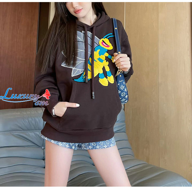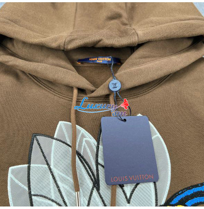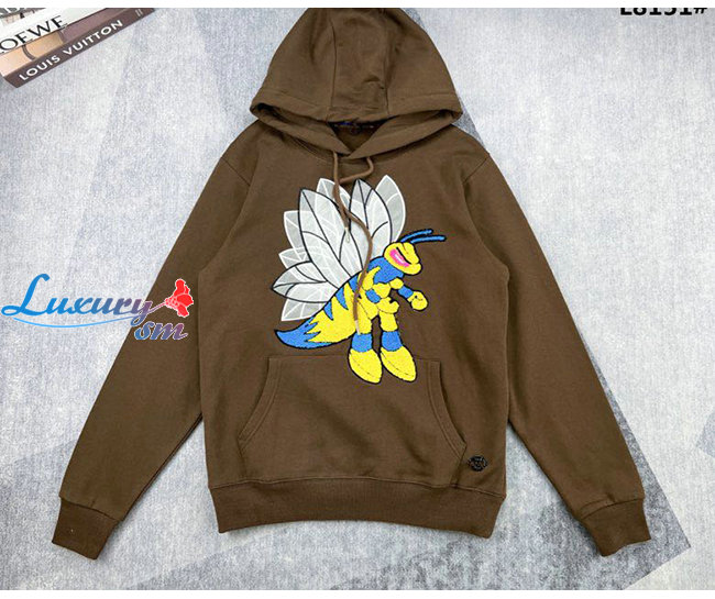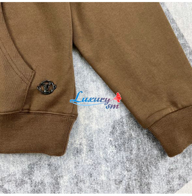 LOUIS VUITTON-08151 루이비통 브라운 아플리케 장식 후드 티셔츠 남여공용