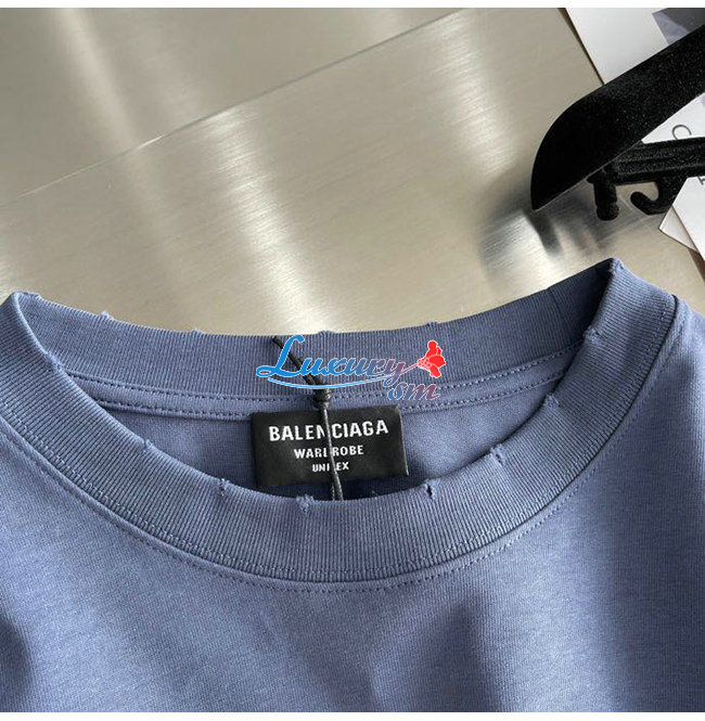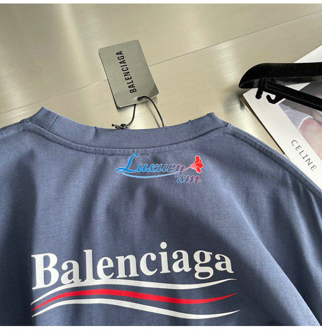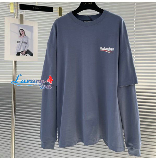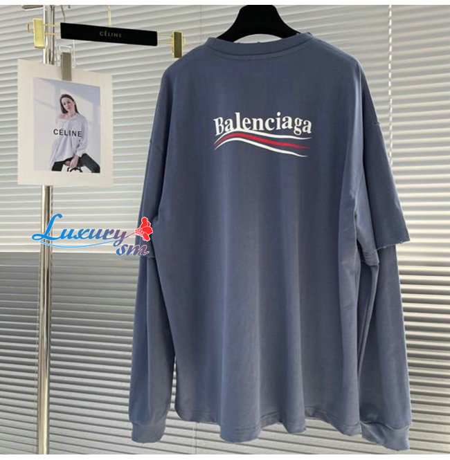 BALENCIAGA-08195 발렌시아가 네이비 프린트 장식 레이어드 티셔츠 남성용