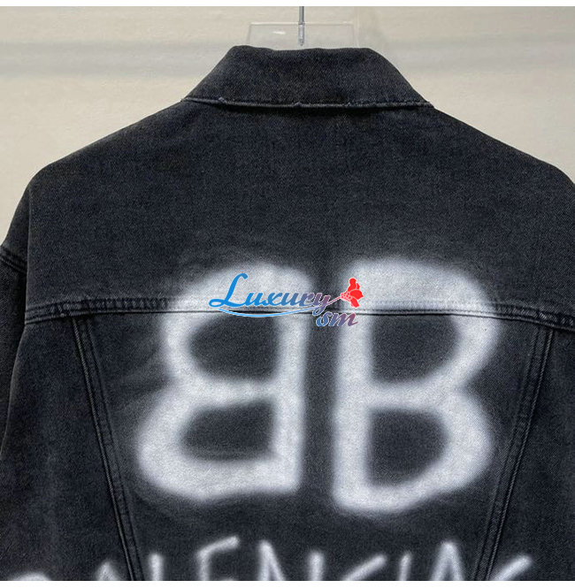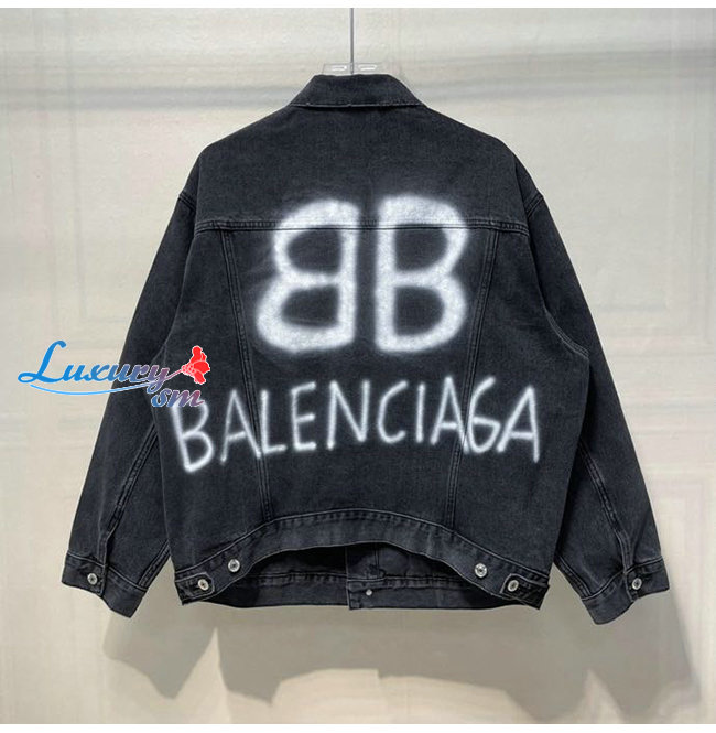 BALENCIAGA-08198 발렌시아가 블랙 프린트 장식 야광 데님 재킷 남여공용
