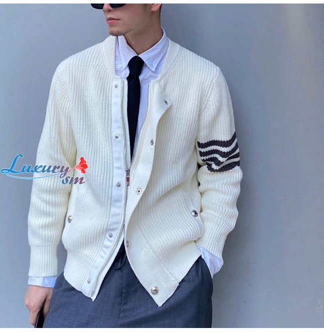 THOM BROWNE-08025 톰 브라운 화이트 스트라이프 장식 가디건 남여공용